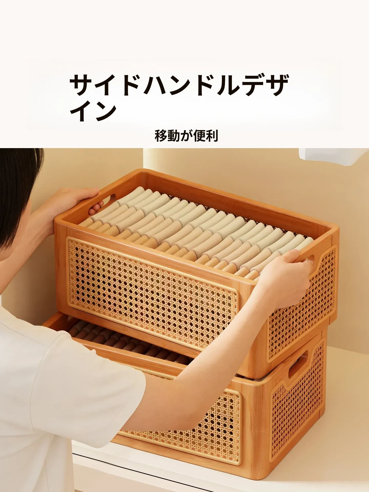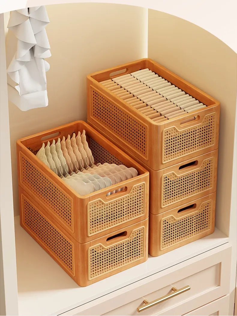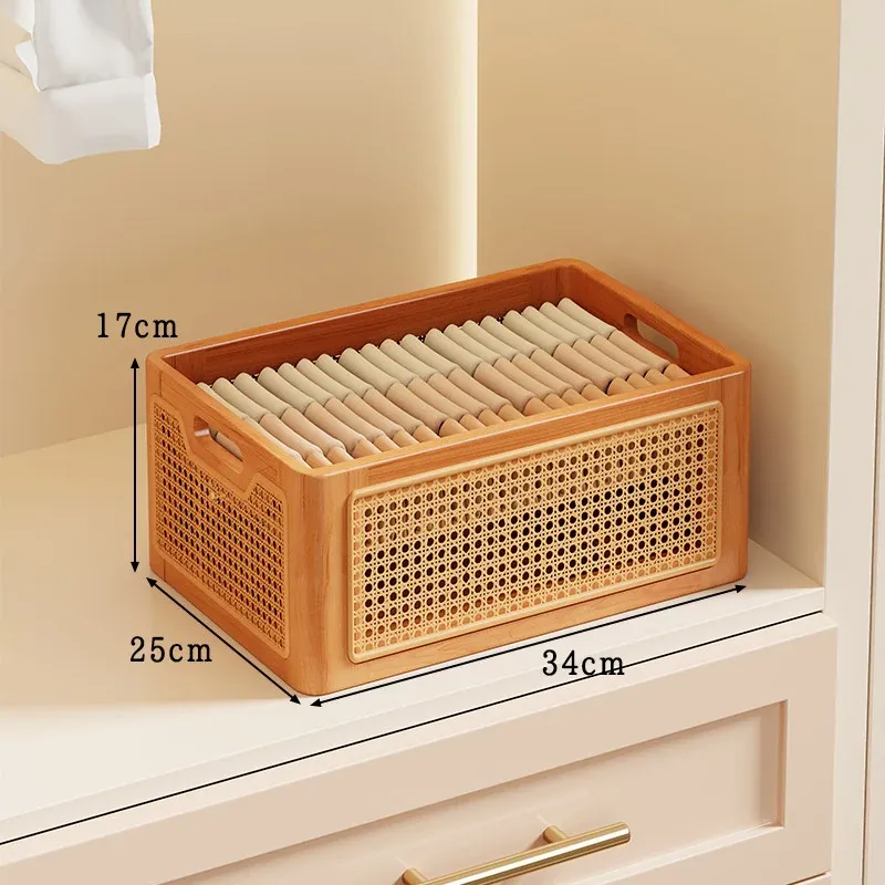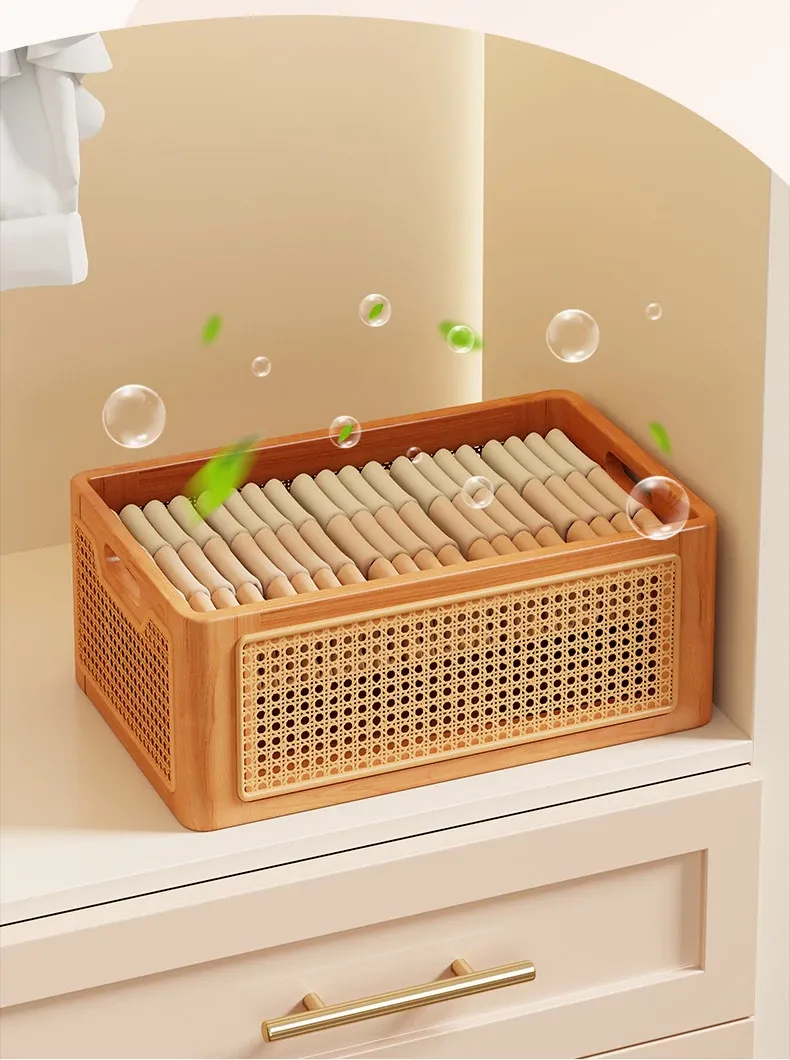天然木製の下着収納ボックス - パンツ・靴下・下着が一緒に整理できる便利な3in1!重ねて使えるので、スペースを有効活用。おしゃれで機能的な収納アイテムで、毎日の生活をより快適に。