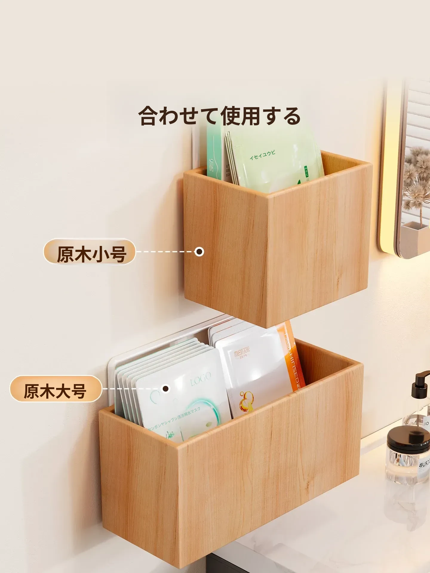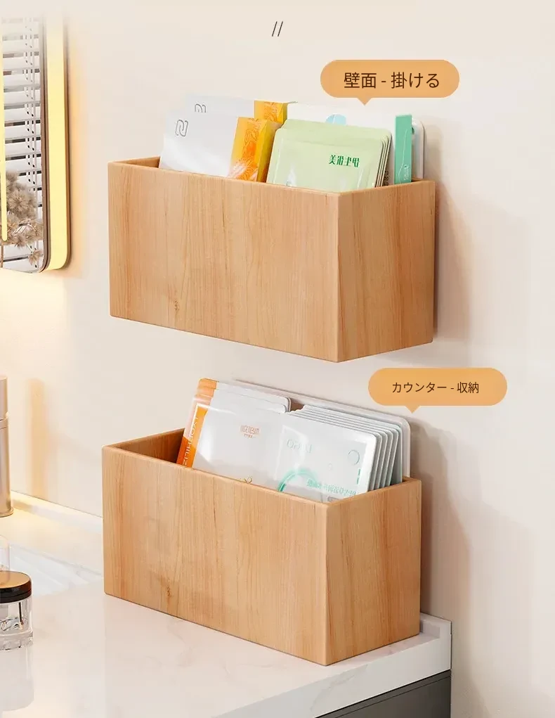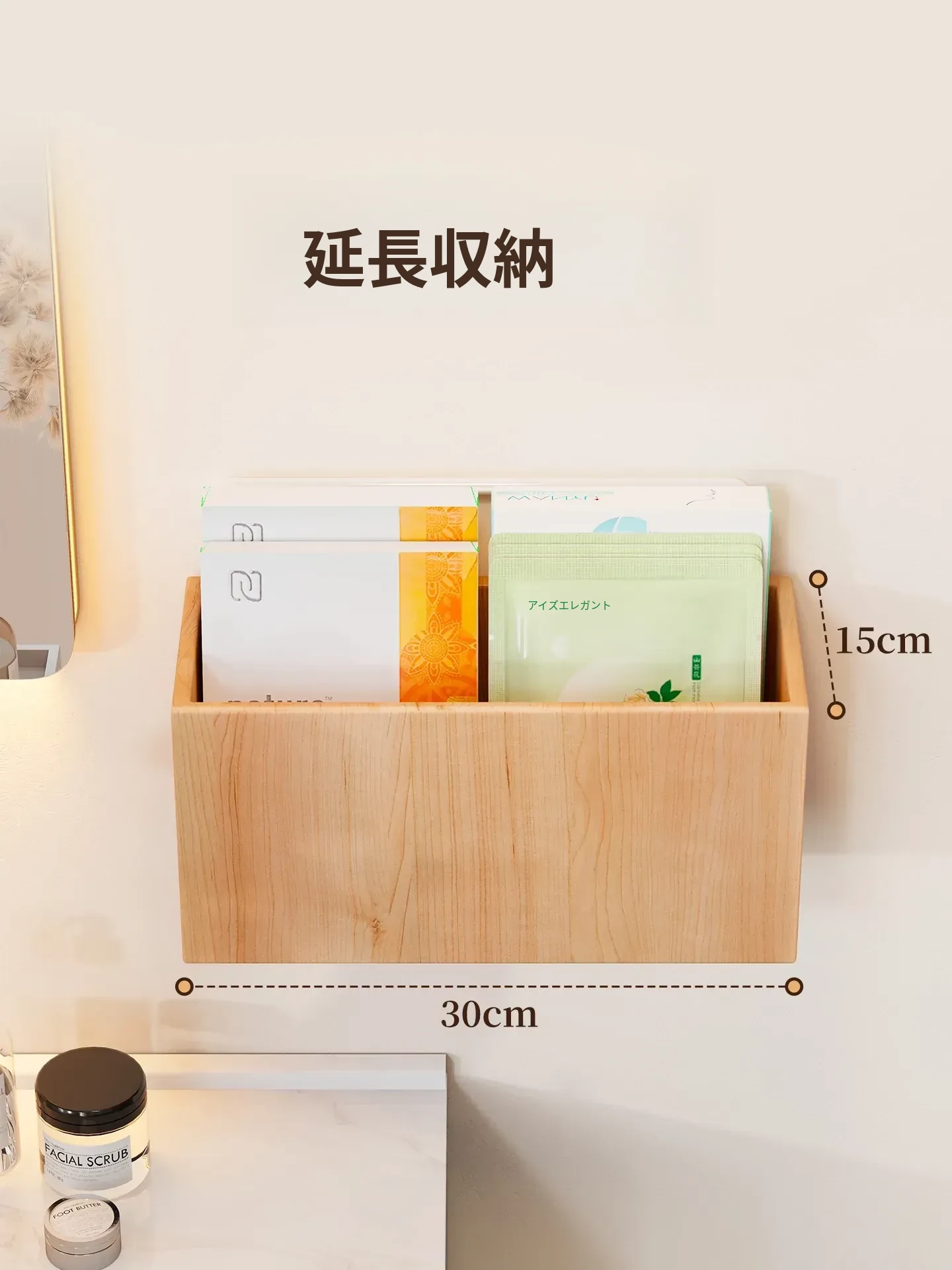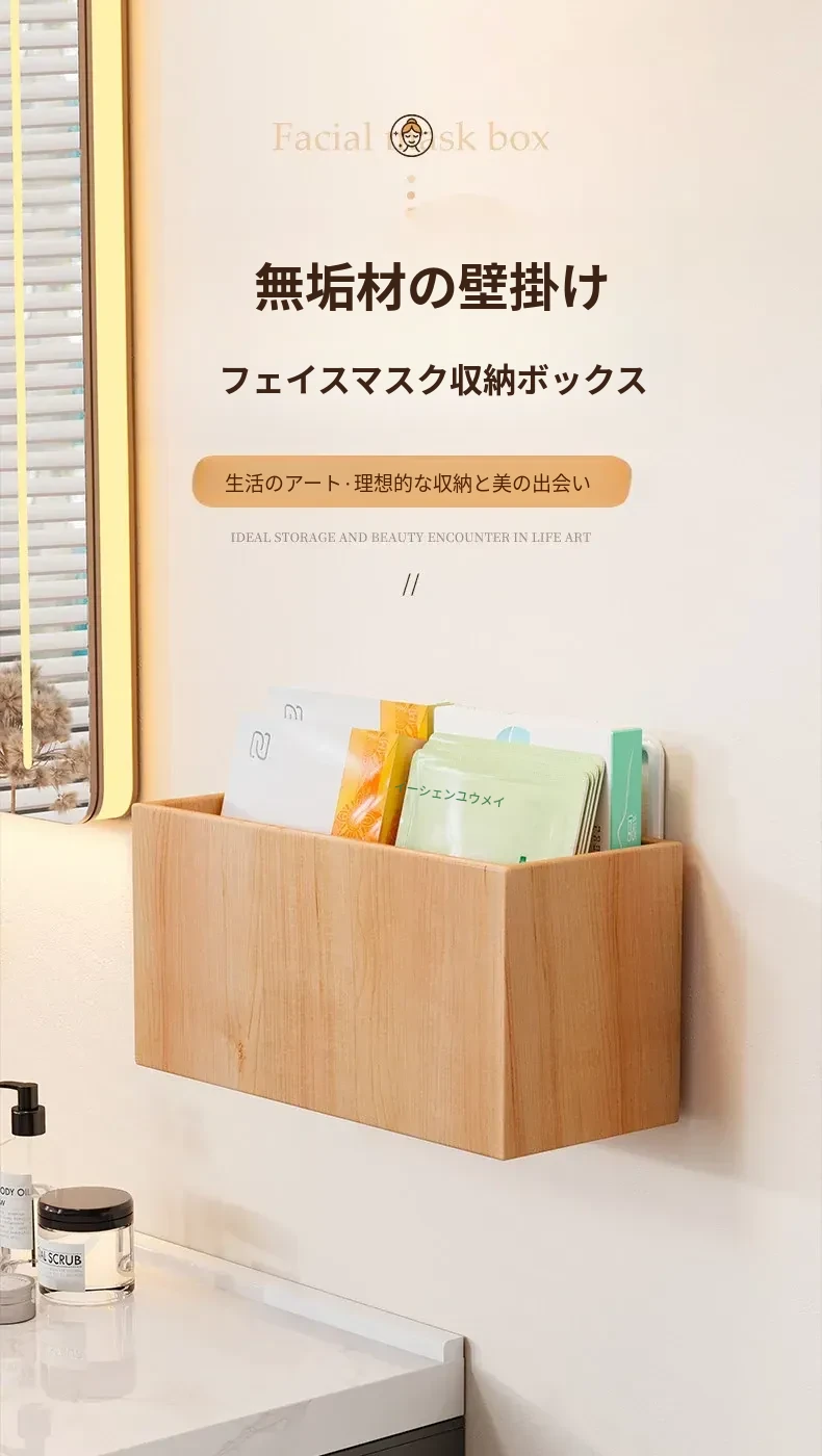 天然木製フェイスマスク収納ボックス 美容デスク用オーガナイザー 化粧台用スキンケア収納 長方形壁掛けタイプで省スペース!おしゃれで機能的な収納で、毎日のビューティーケアをもっと快適に!