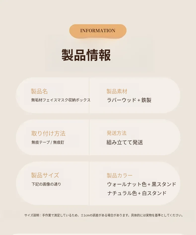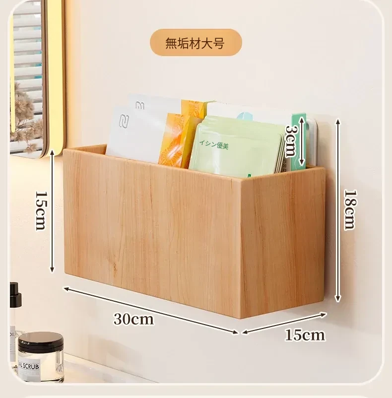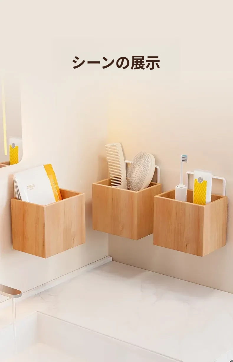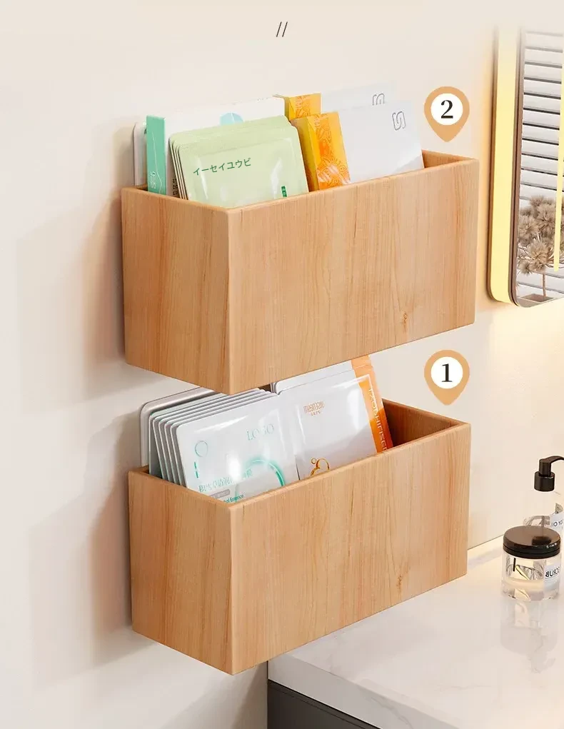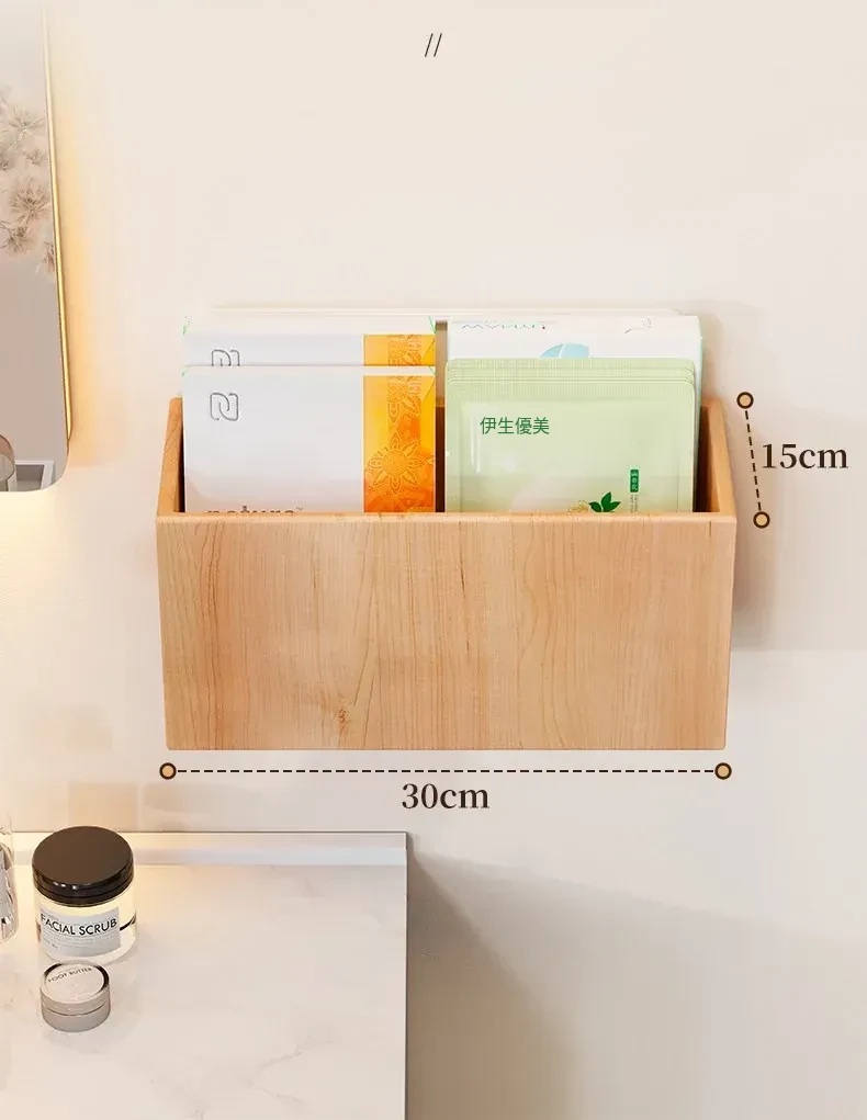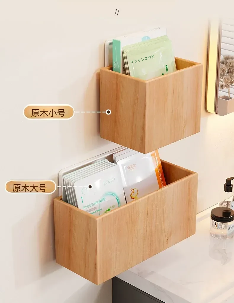 天然木製フェイスマスク収納ボックス 美容デスク用オーガナイザー 化粧台用スキンケア収納 長方形壁掛けタイプで省スペース!おしゃれで機能的な収納で、毎日のビューティーケアをもっと快適に!