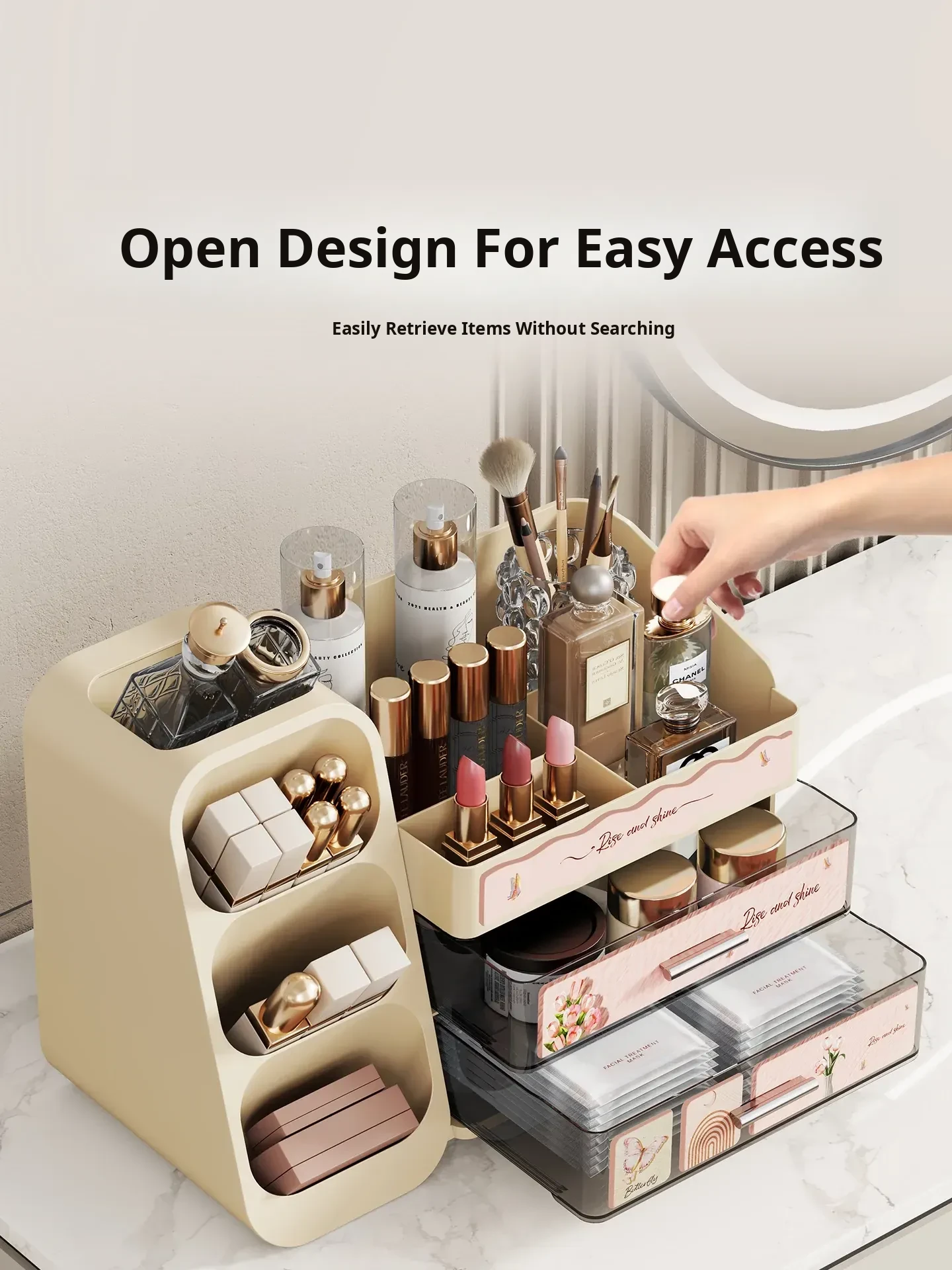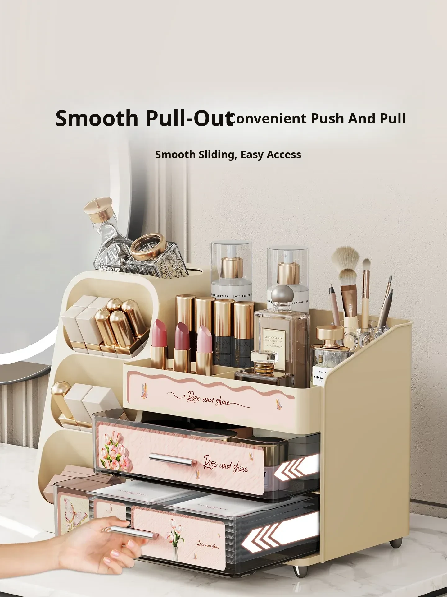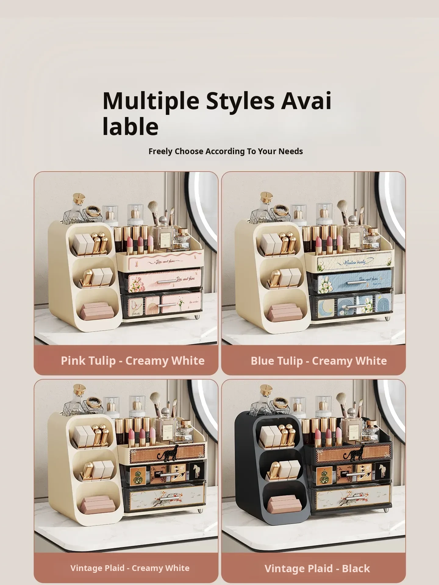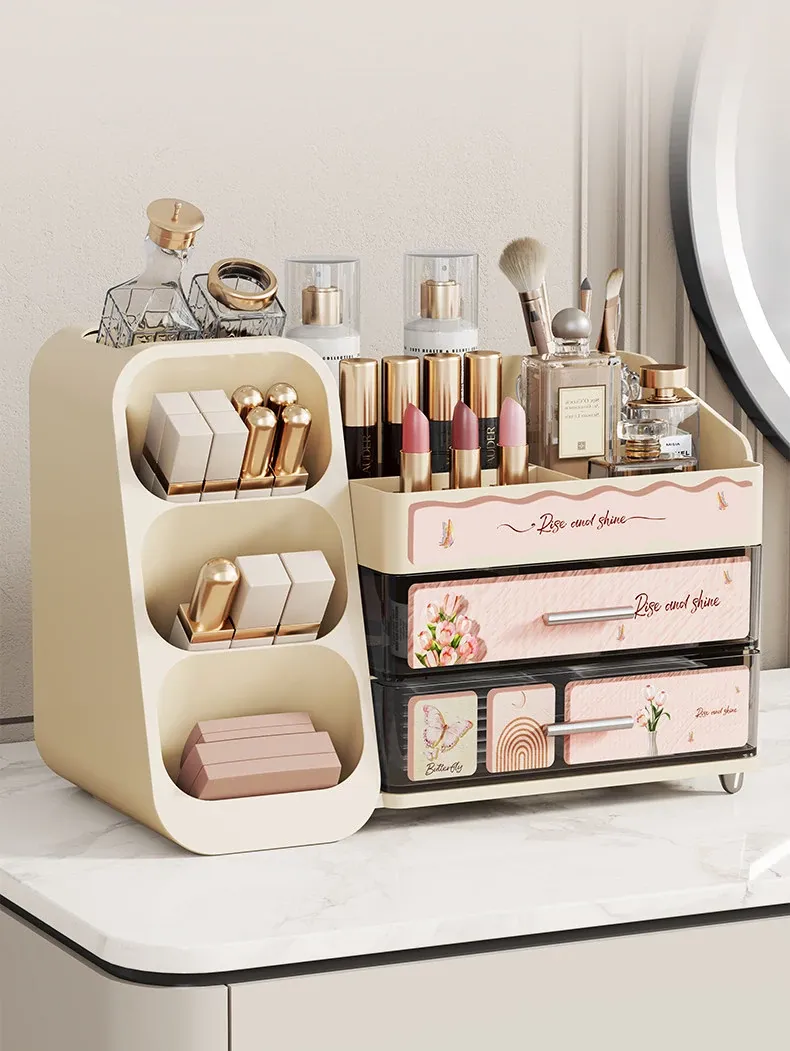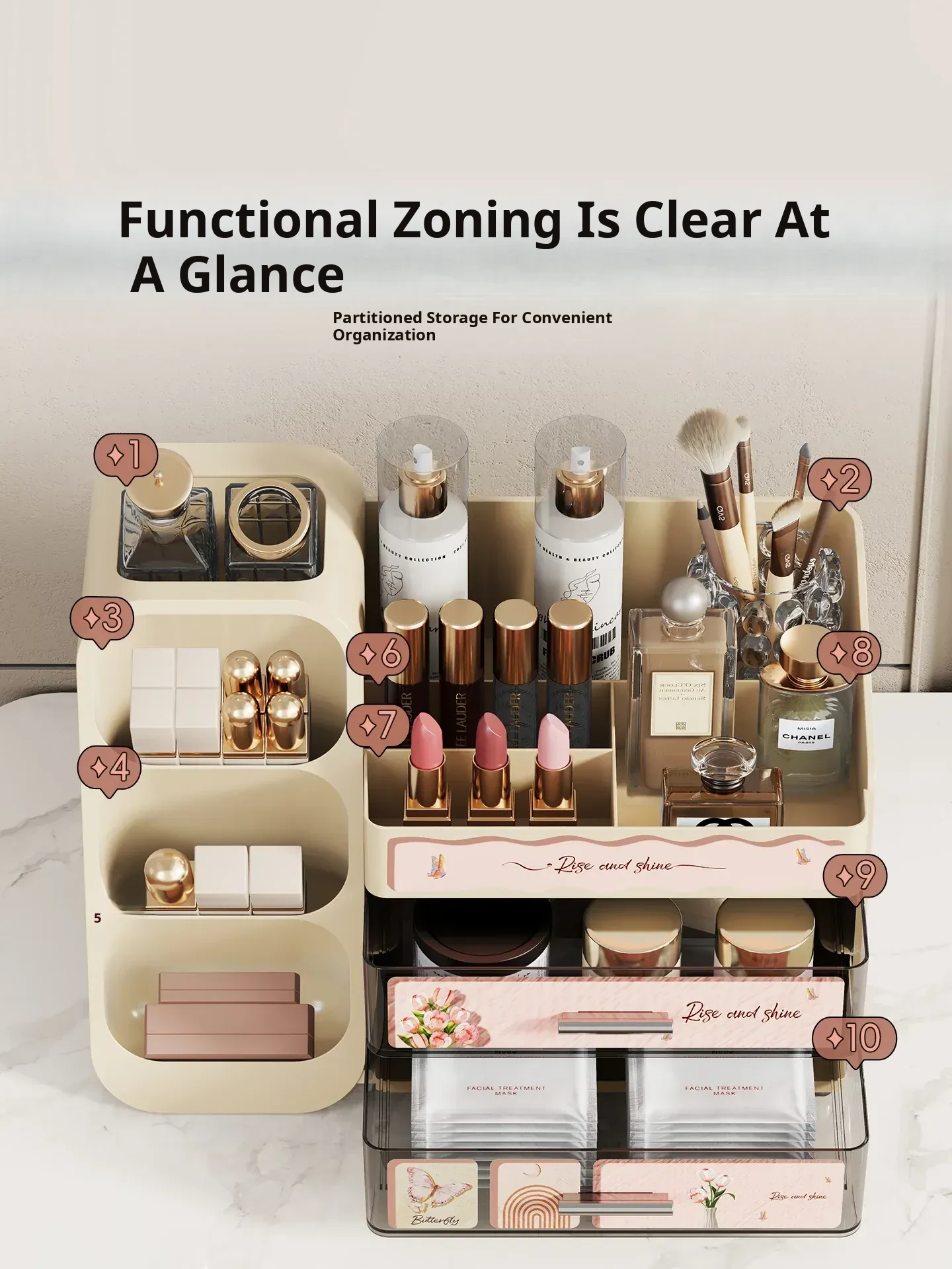 Stylish Desktop Cosmetic Organizer - Drawer Style, Dustproof & Spacious Makeup and Skincare Storage Box for Vanity and Face Masks