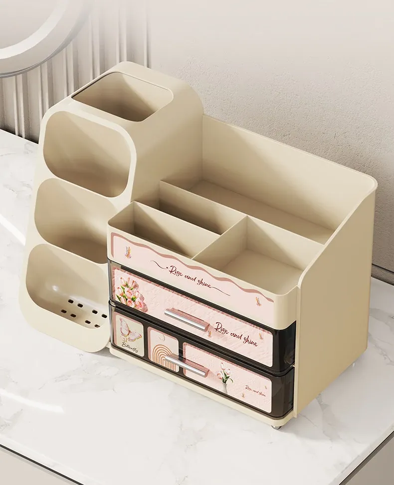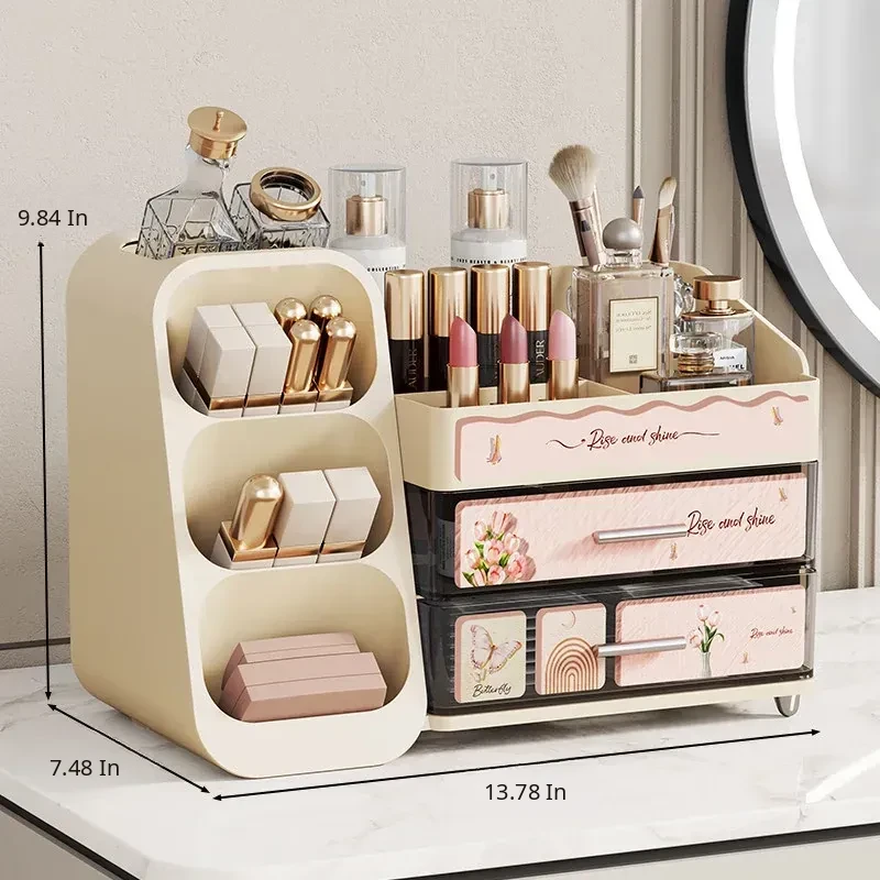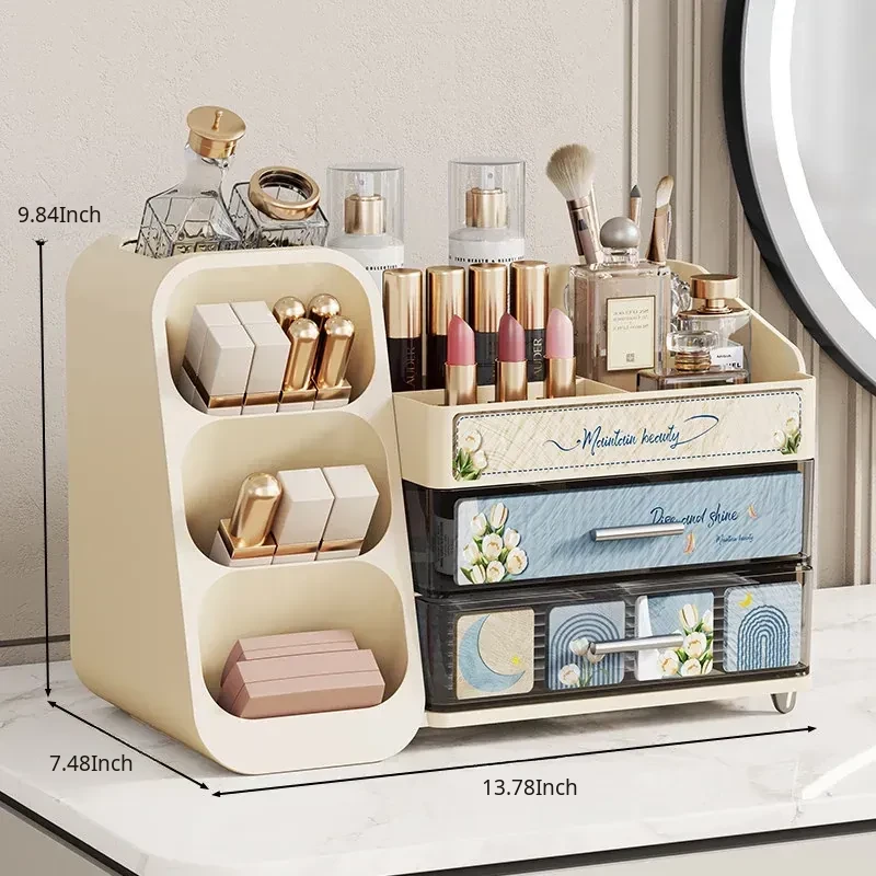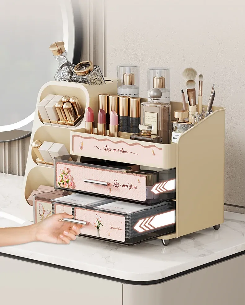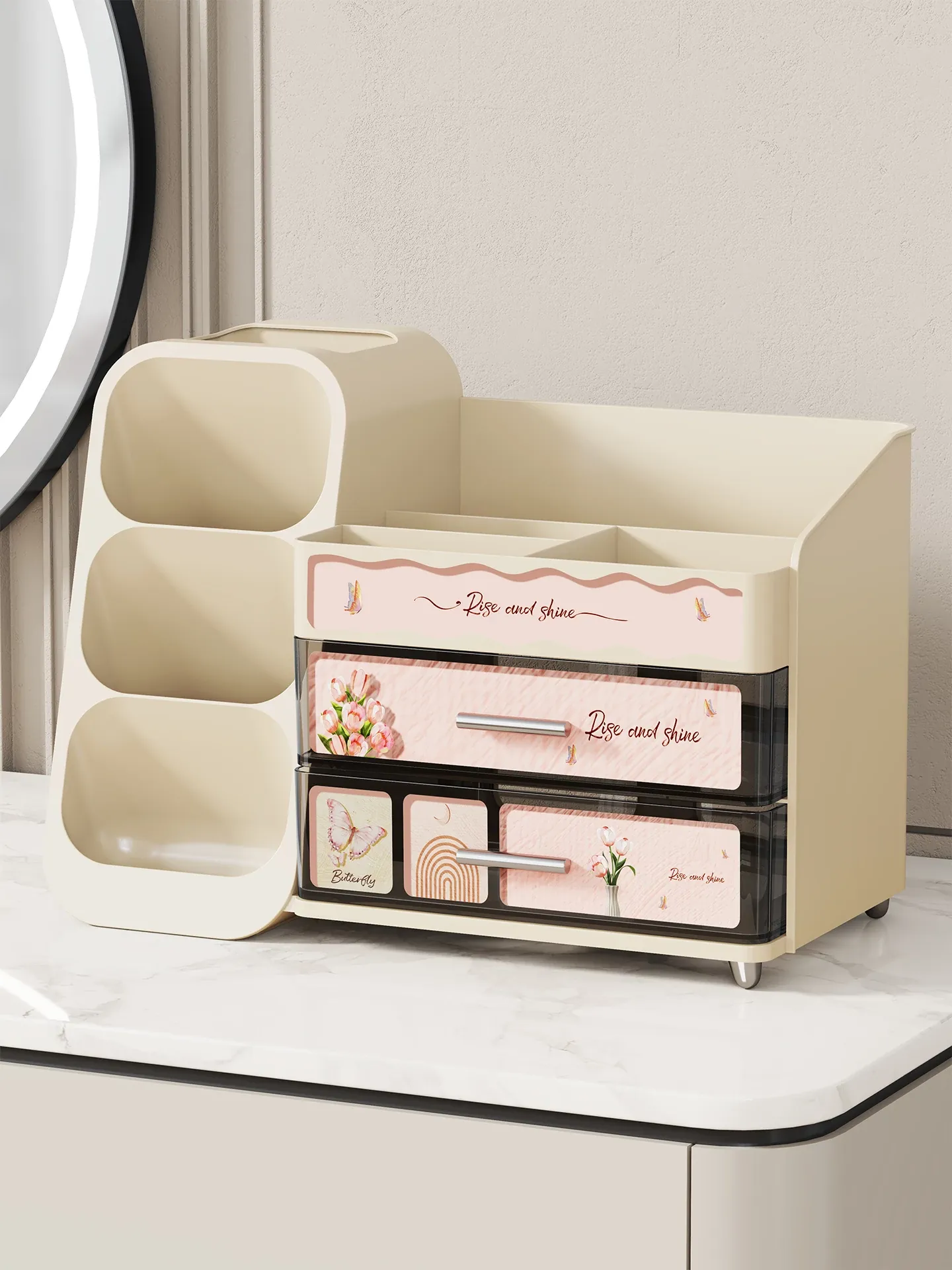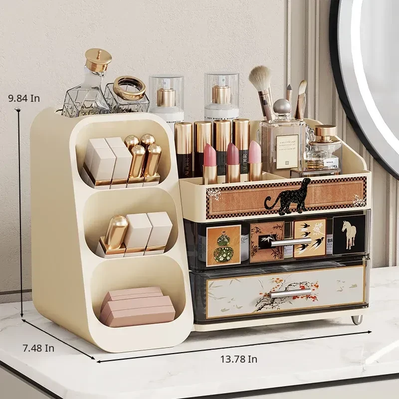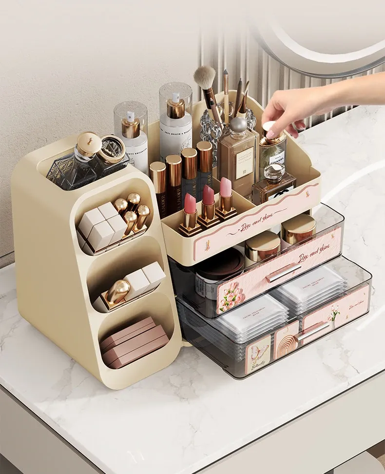 Stylish Desktop Cosmetic Organizer - Drawer Style, Dustproof & Spacious Makeup and Skincare Storage Box for Vanity and Face Masks