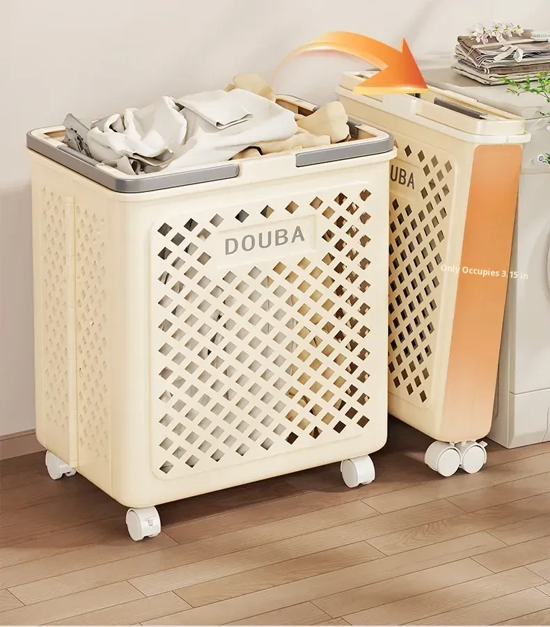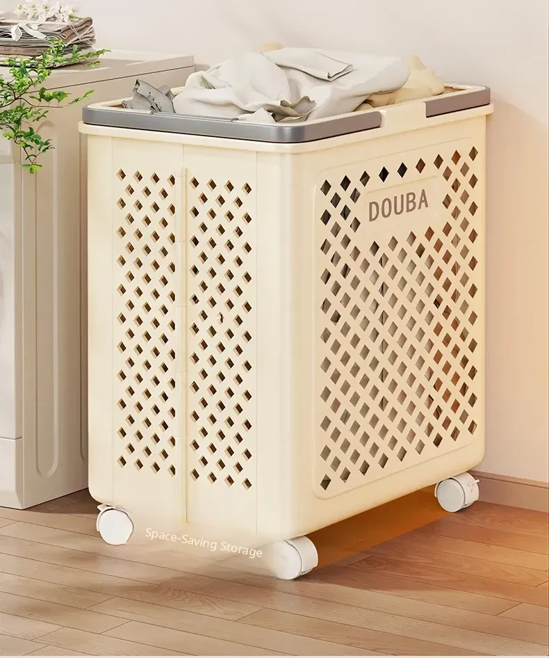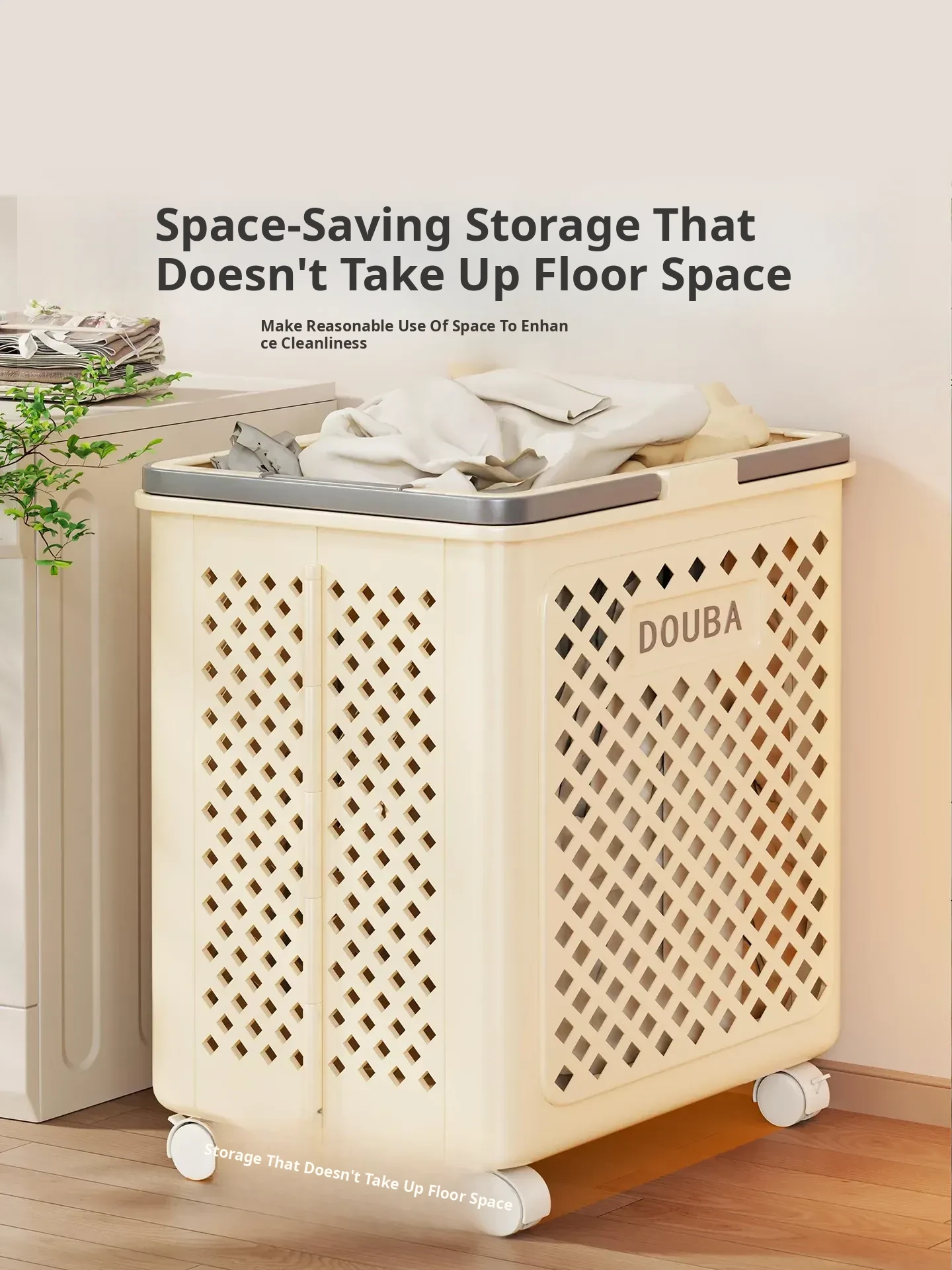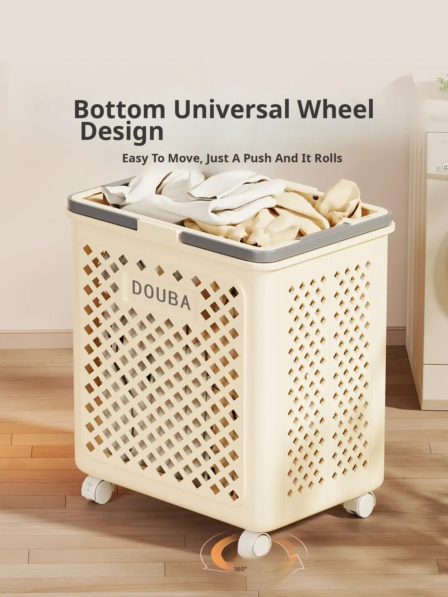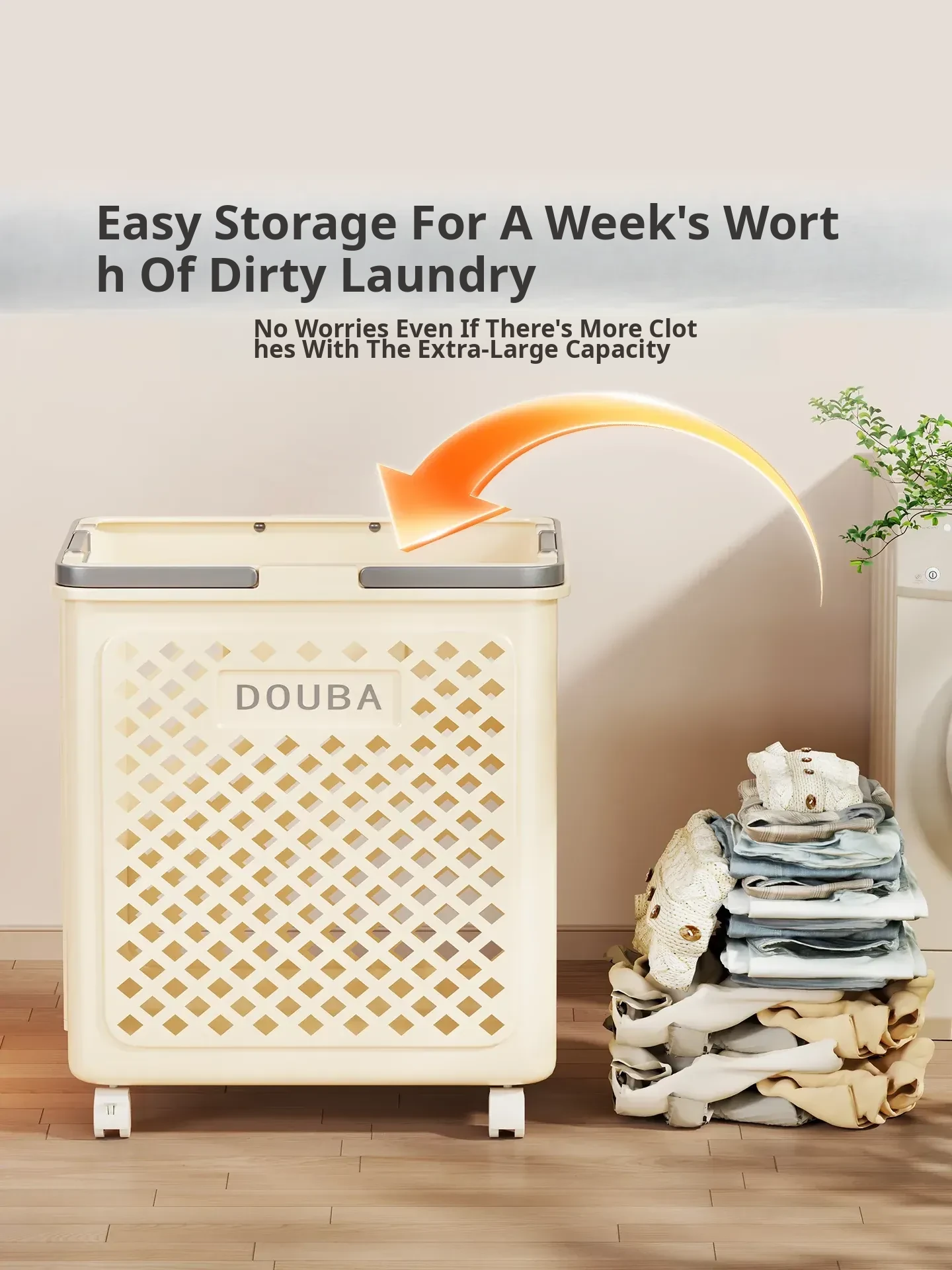 Stylish Extra Large Laundry Basket with Wheels - Convenient Portable Storage Bin for Home, Perfect for Bathroom and Laundry Room!