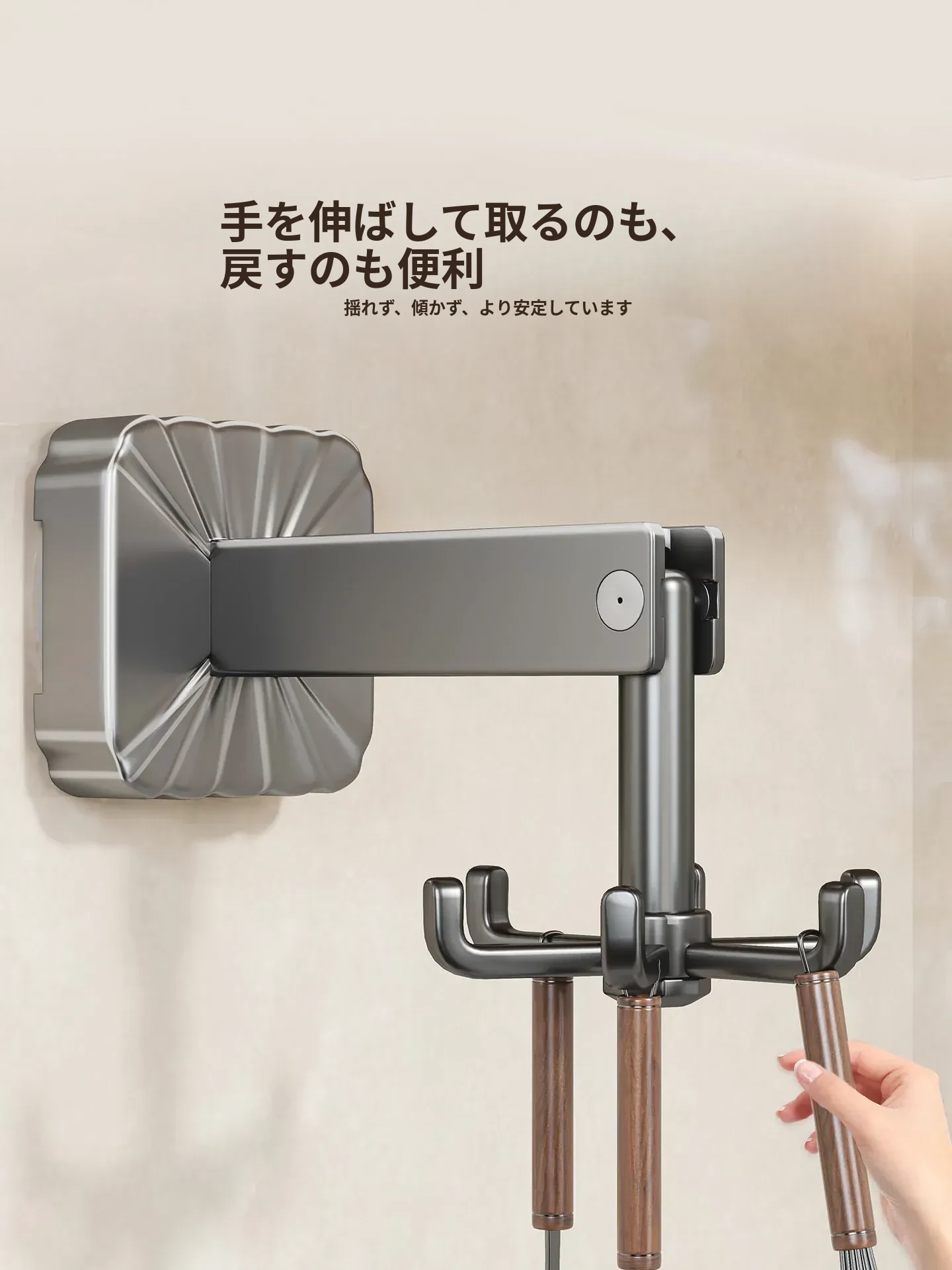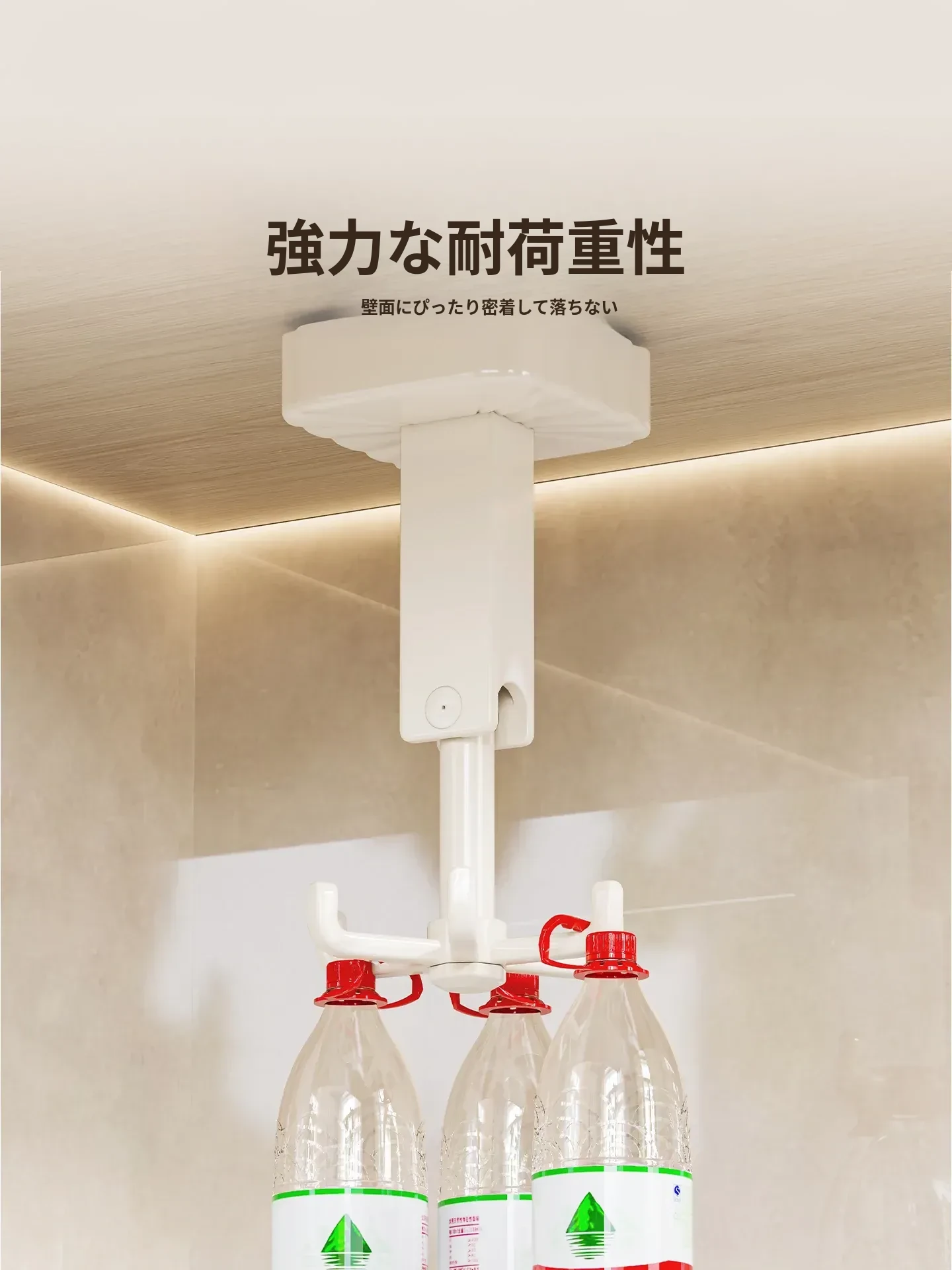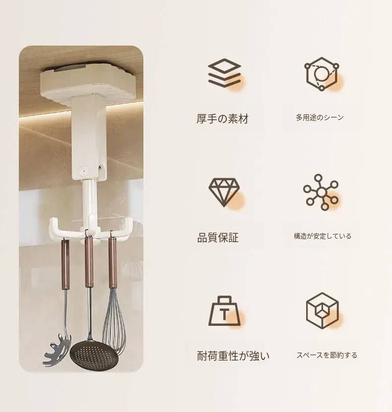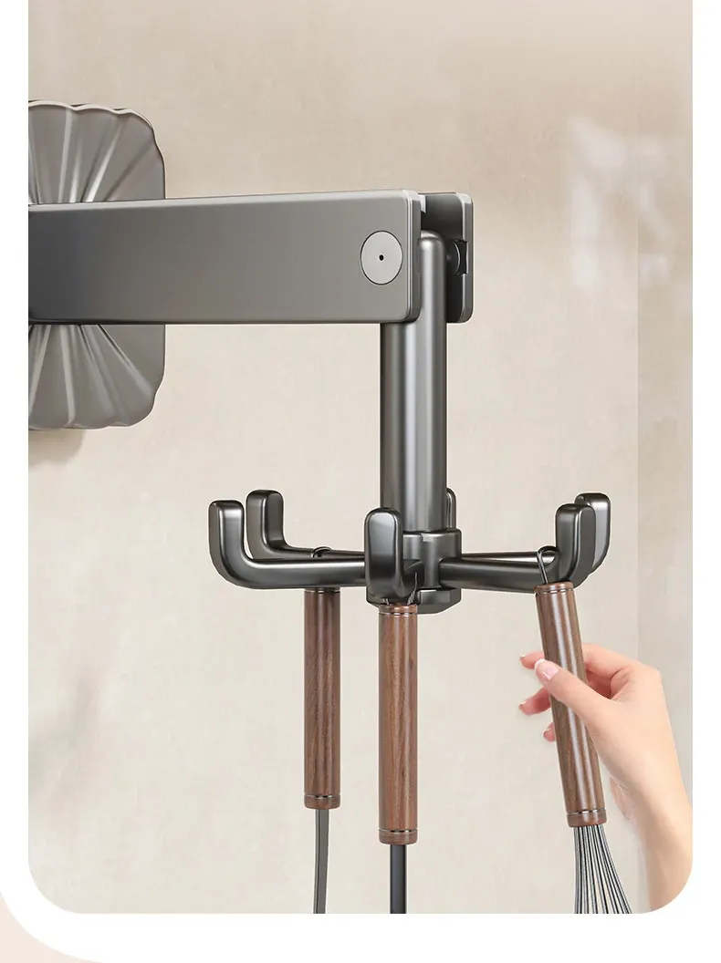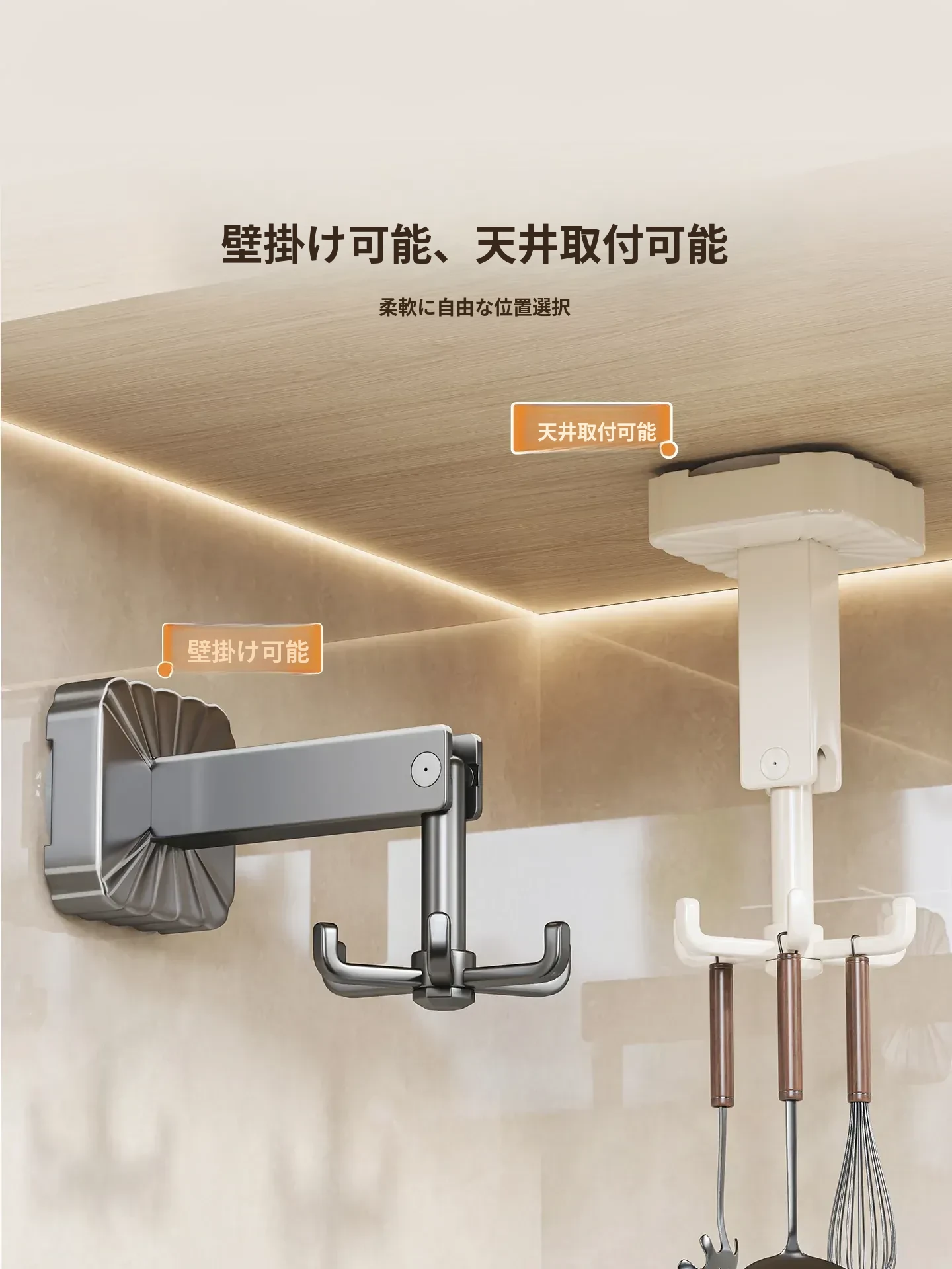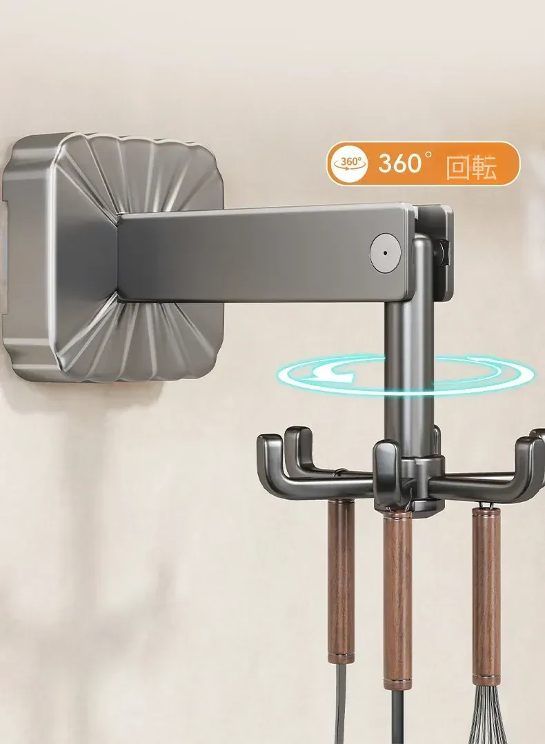 吸盤回転フック付きキッチン収納ラック - フライ返しやスプーンをすっきり整理!穴あけ不要の壁掛け式で、簡単取り付け。キッチンを美しく、便利に保つアイテム!