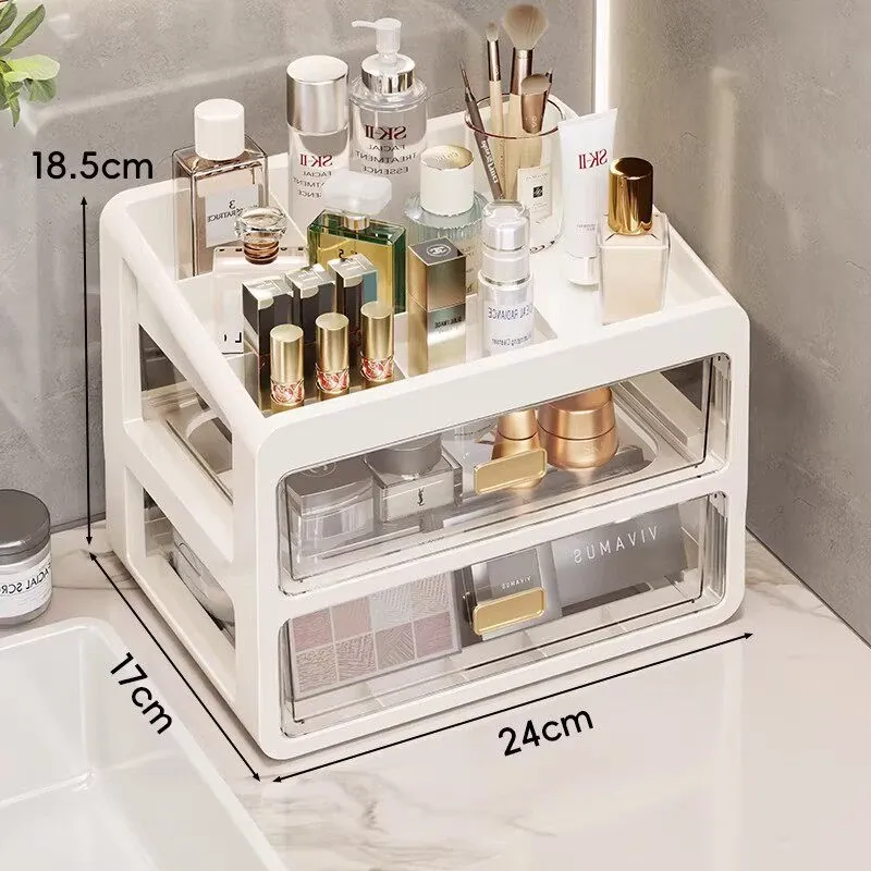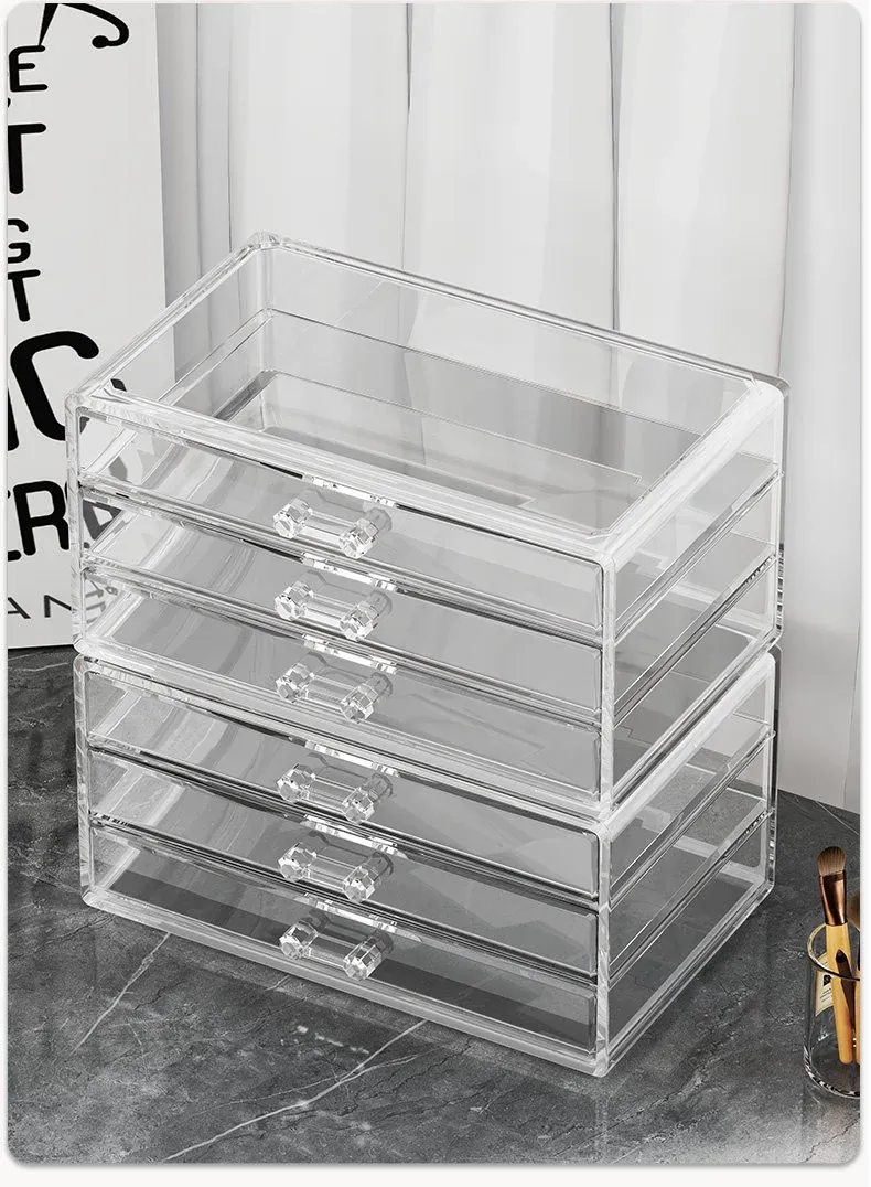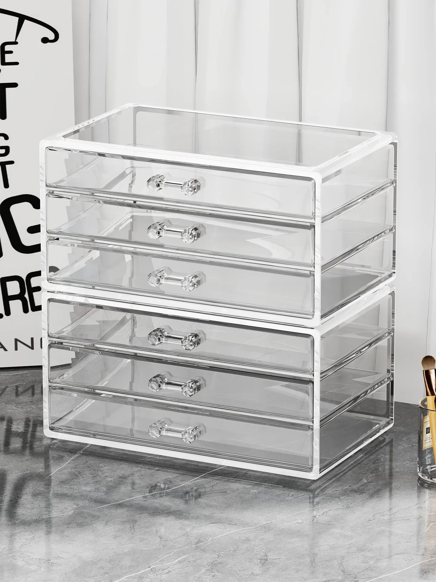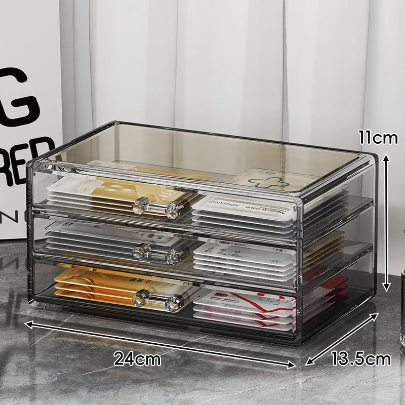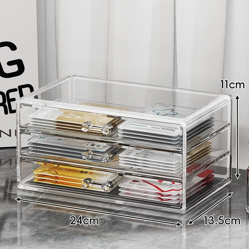 透明デスクトップ収納ボックス|メイクやスキンケアに最適な防塵抽斗式フェイスマスク収納ケース|おしゃれで機能的な化粧品&小物整理用キャビネット