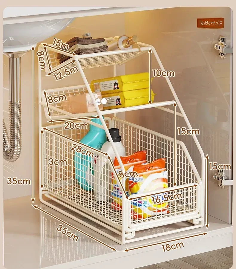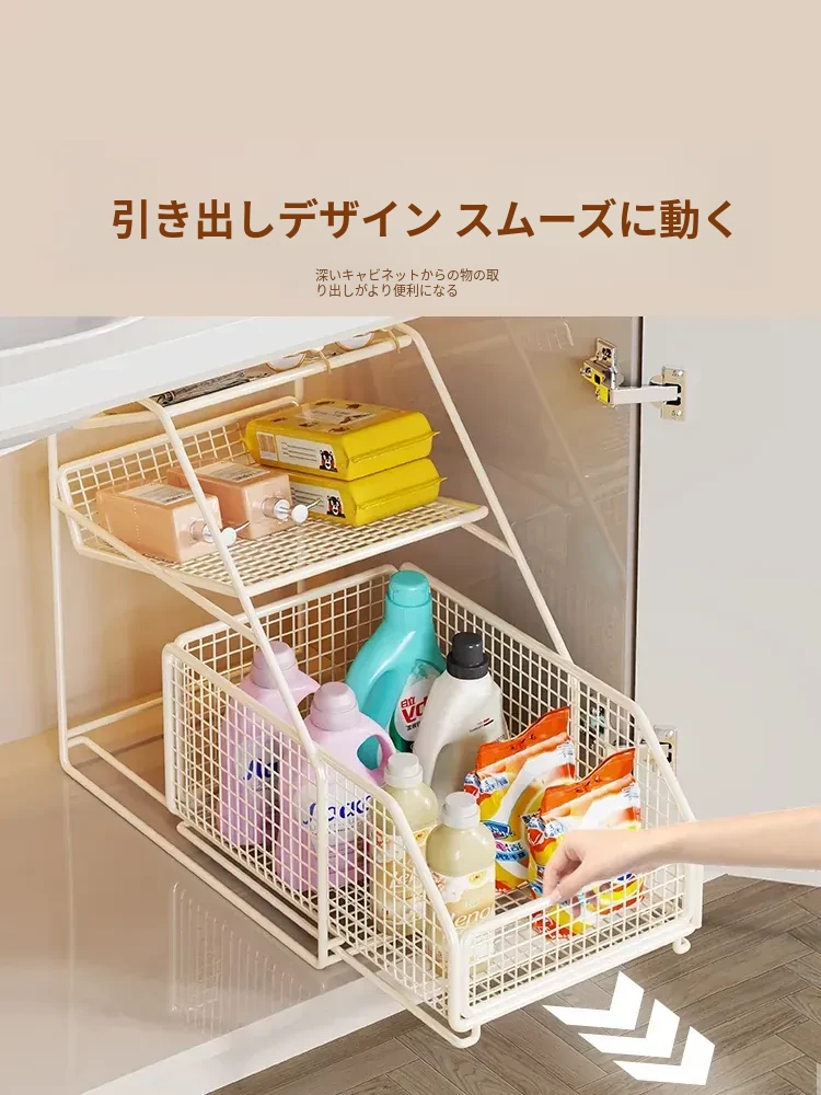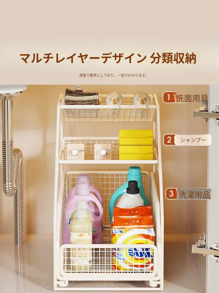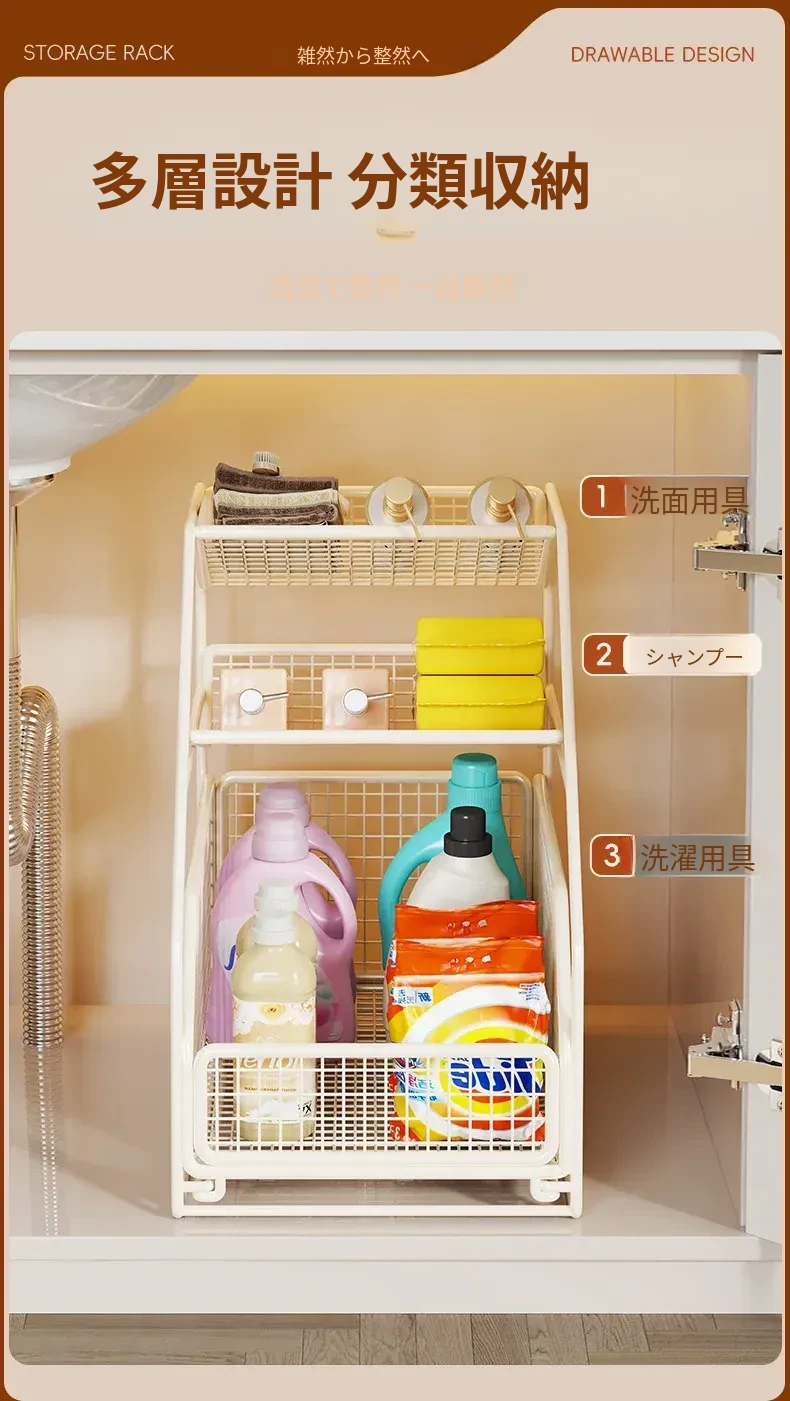 洗面台下水槽収納ラック - 浴室に最適な多層式収納棚!深型引き出し付きで、すっきり整理整頓!限られたスペースを有効活用し、使いやすさ抜群の収納ソリューション!