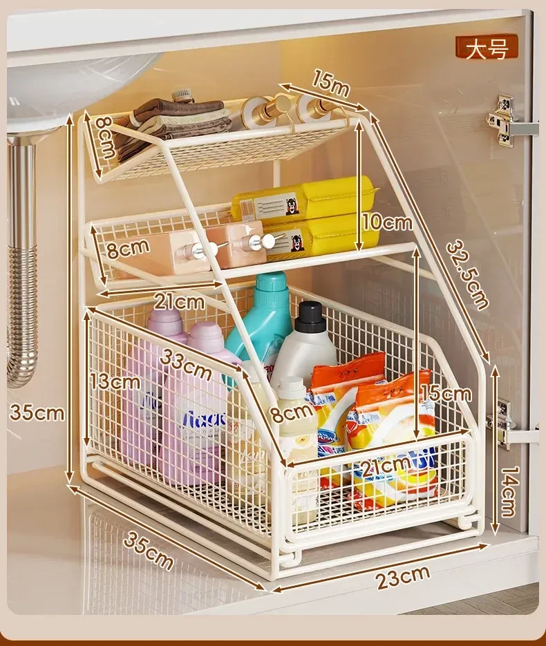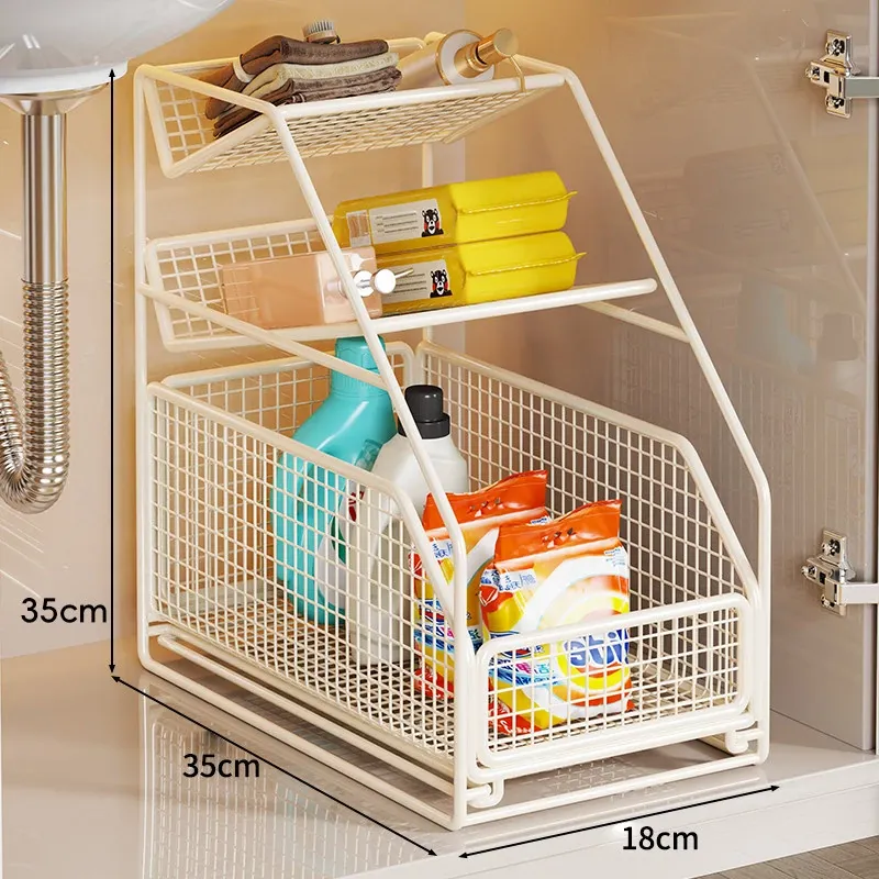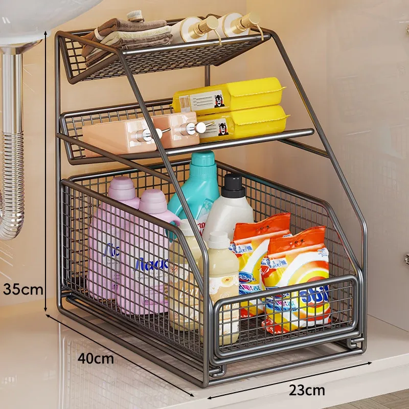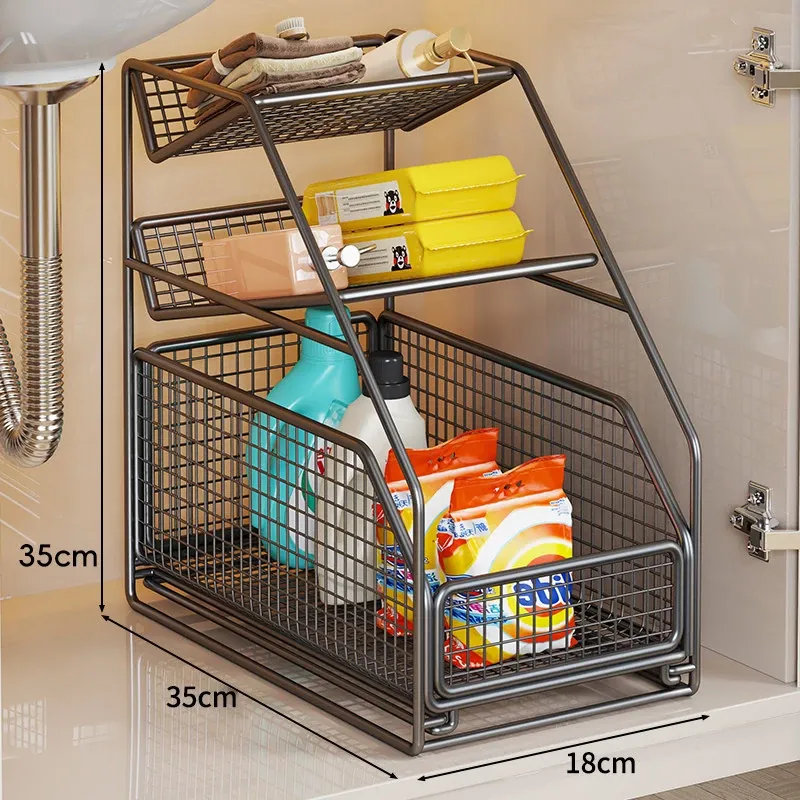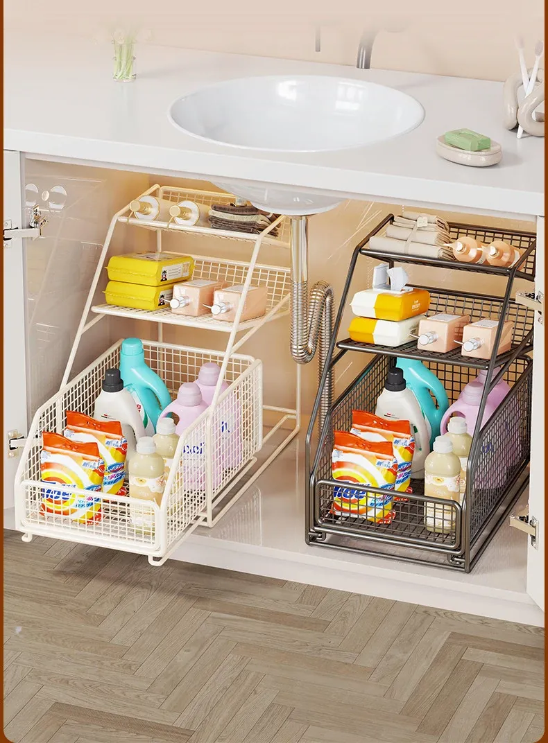 洗面台下水槽収納ラック - 浴室に最適な多層式収納棚!深型引き出し付きで、すっきり整理整頓!限られたスペースを有効活用し、使いやすさ抜群の収納ソリューション!