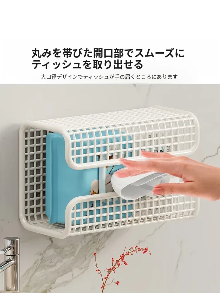 壁掛け式洗顔タオル収納ボックス - 取り付け不要で便利!家庭用フェイスタオルやティッシュをスマートに整理。清潔感あふれるバスルームを演出し、使いやすさ抜群のティッシュホルダーです。