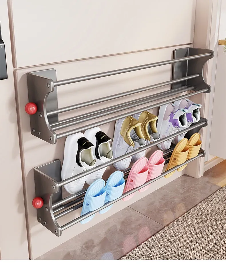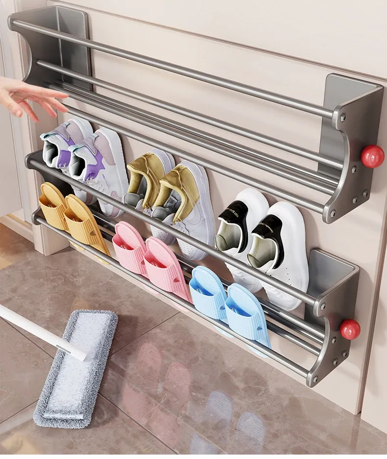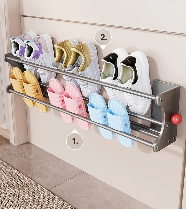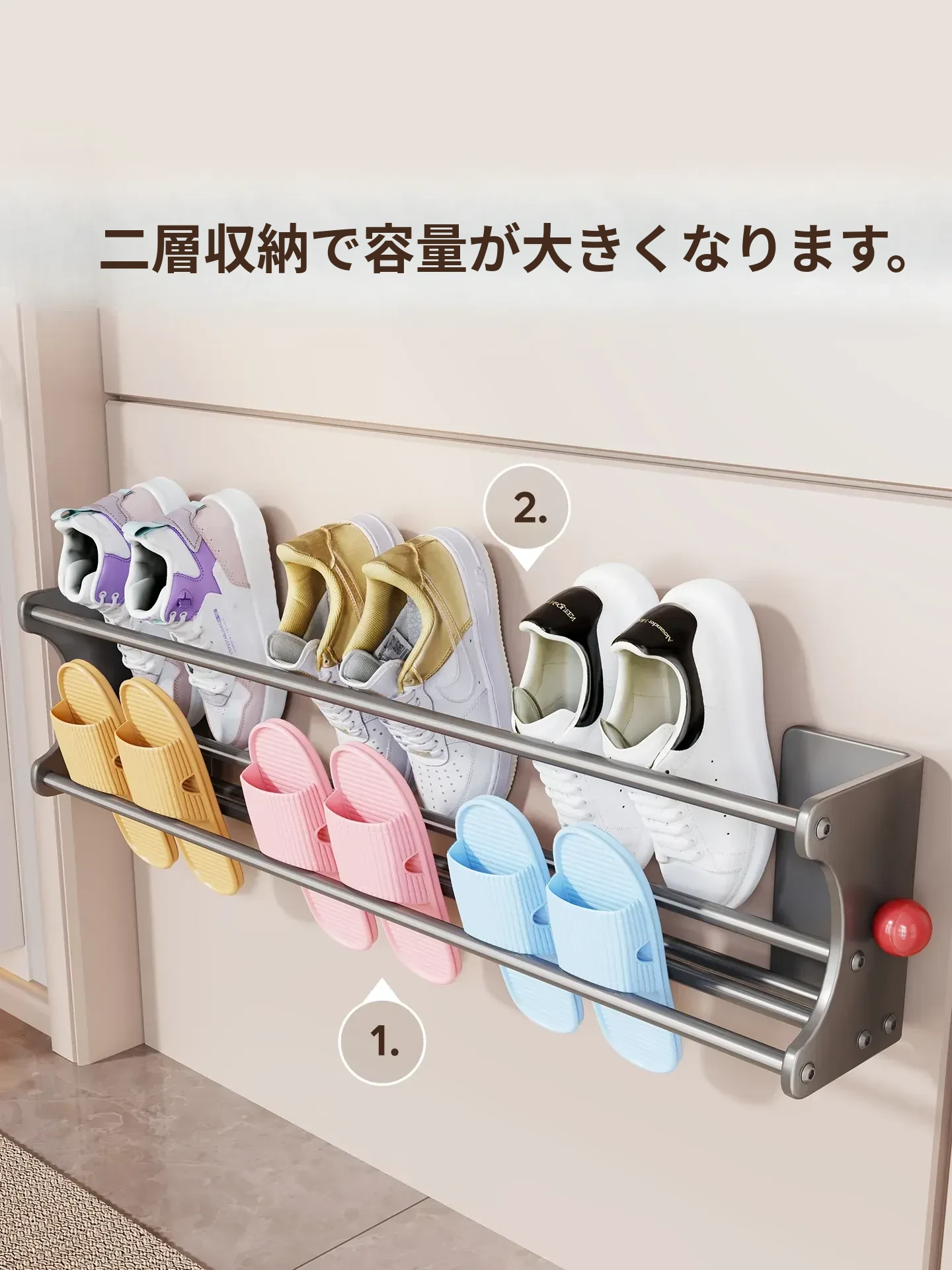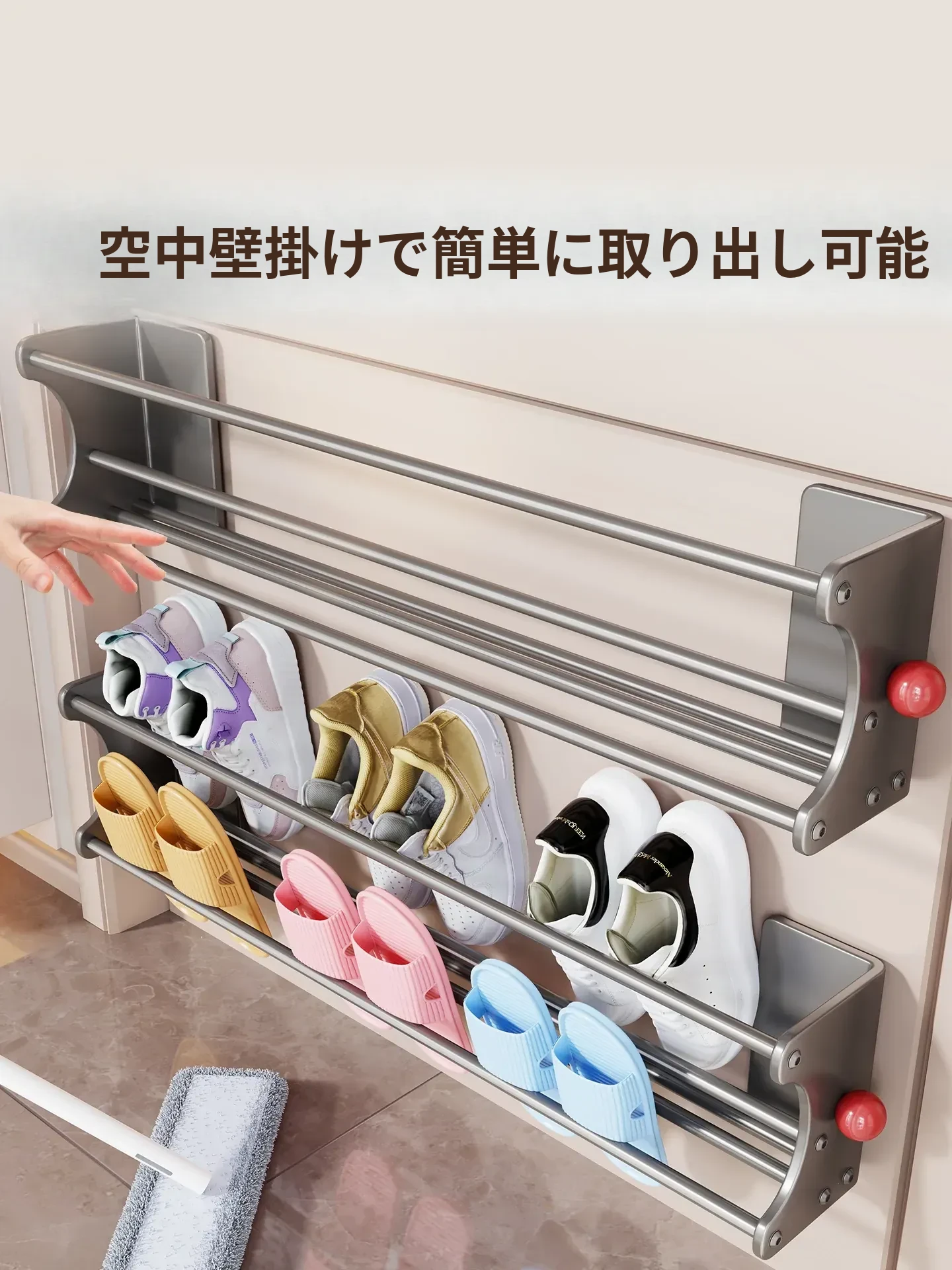 ドア後のシューズラック - 浴室用スリッパ置き場!水切り機能付き、穴あけ不要の便利収納アイテム。壁掛けでスッキリ整理整頓!家のスペースを有効活用して、清潔で快適な空間を実現!