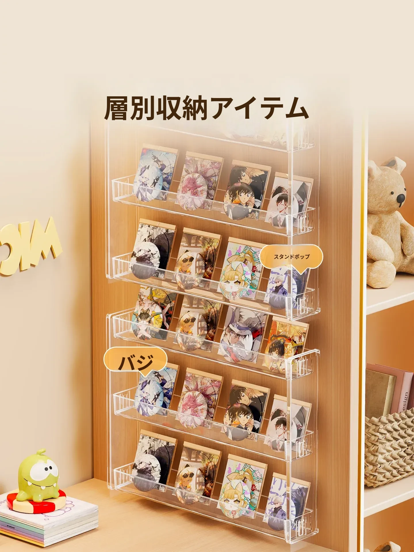 壁掛け透明バッジ収納ボックス - 壁にぴったりフィット!大切なバッジやカードを美しくディスプレイし、埃から守る保護ケース。お部屋のインテリアにも最適なスタイリッシュな収納ラック!