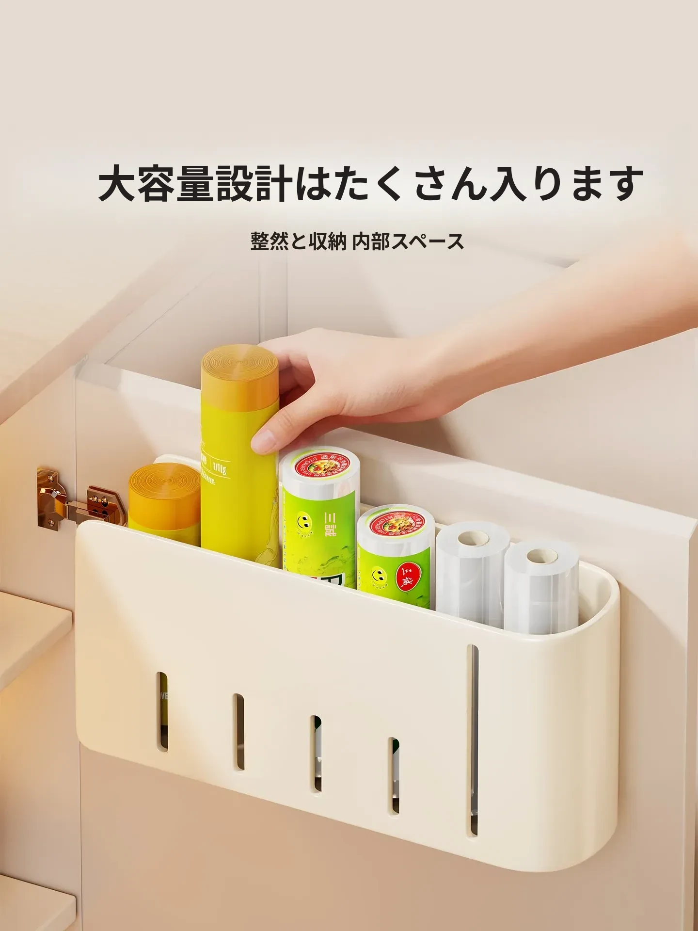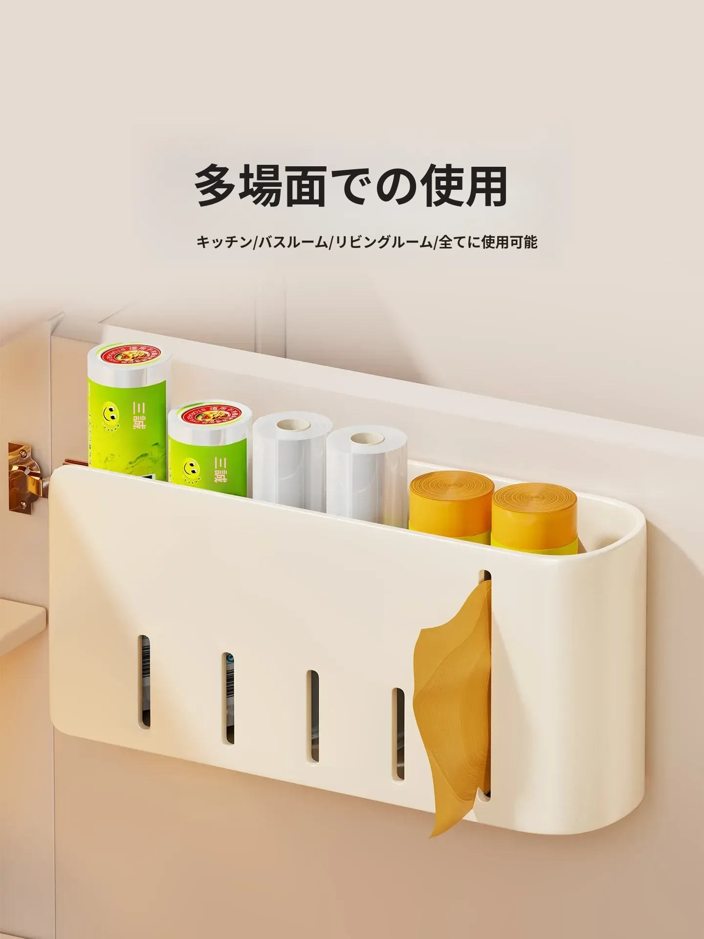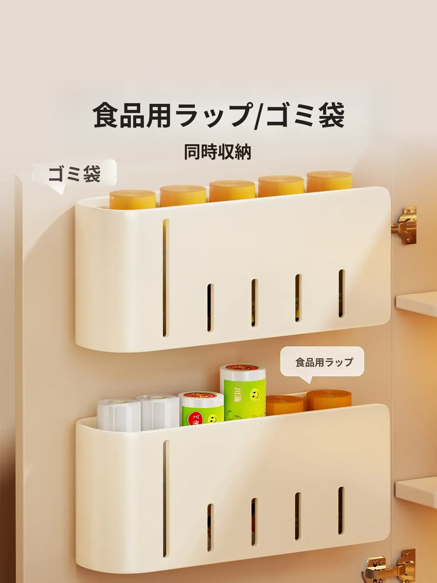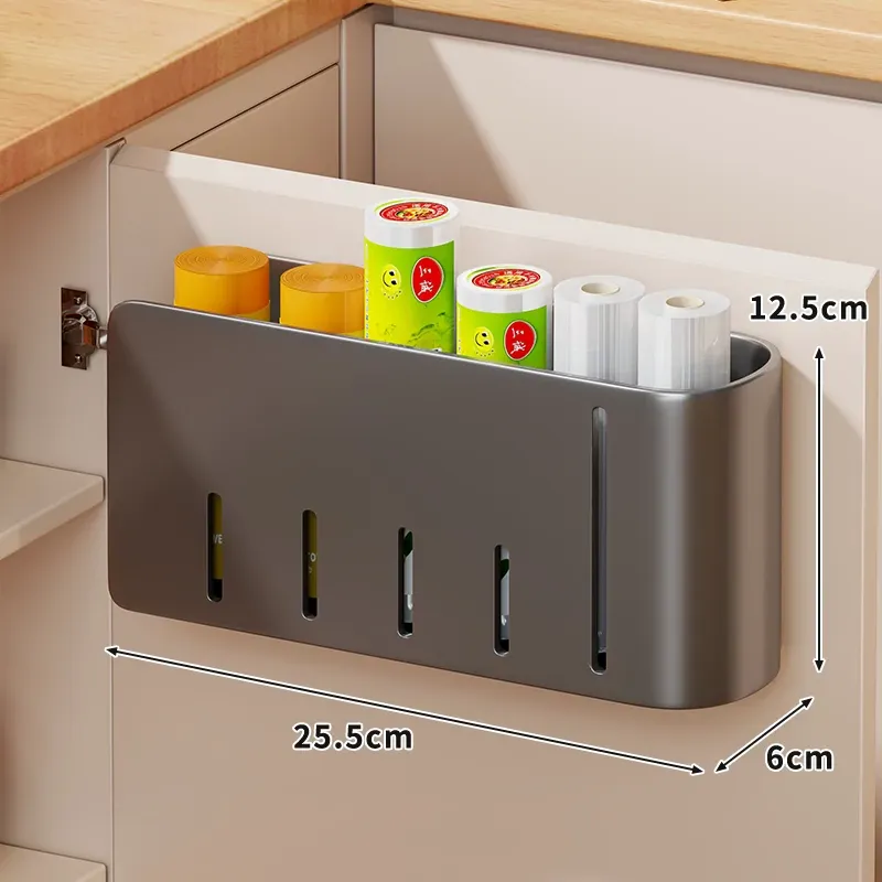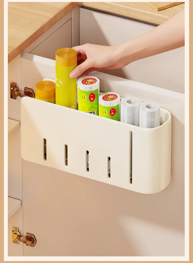 壁掛け式ゴミ袋収納ボックス - 免打孔で大容量!キッチンの整理整頓に最適なプラスチック袋収納アイテム。手軽に取り出せて、スッキリとしたキッチンを実現!