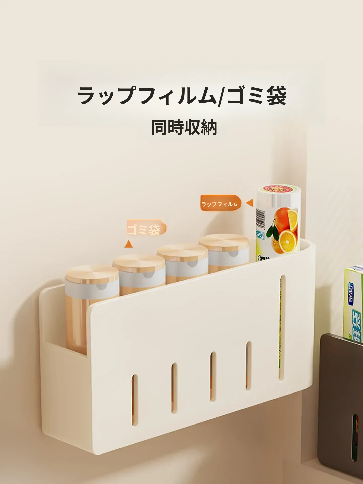 ゴミ袋収納マジック!壁掛け式キッチンキャビネット用プラスチック袋&ラップ収納ボックス - スペースを有効活用して、すっきり整理整頓!