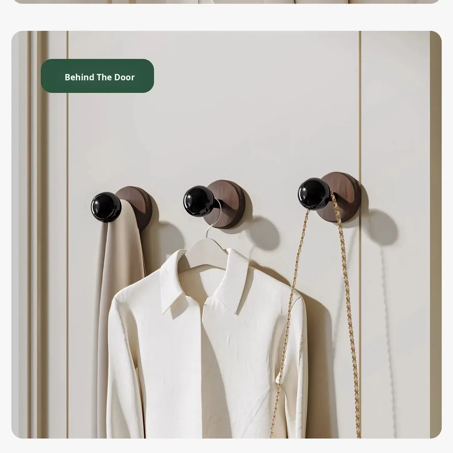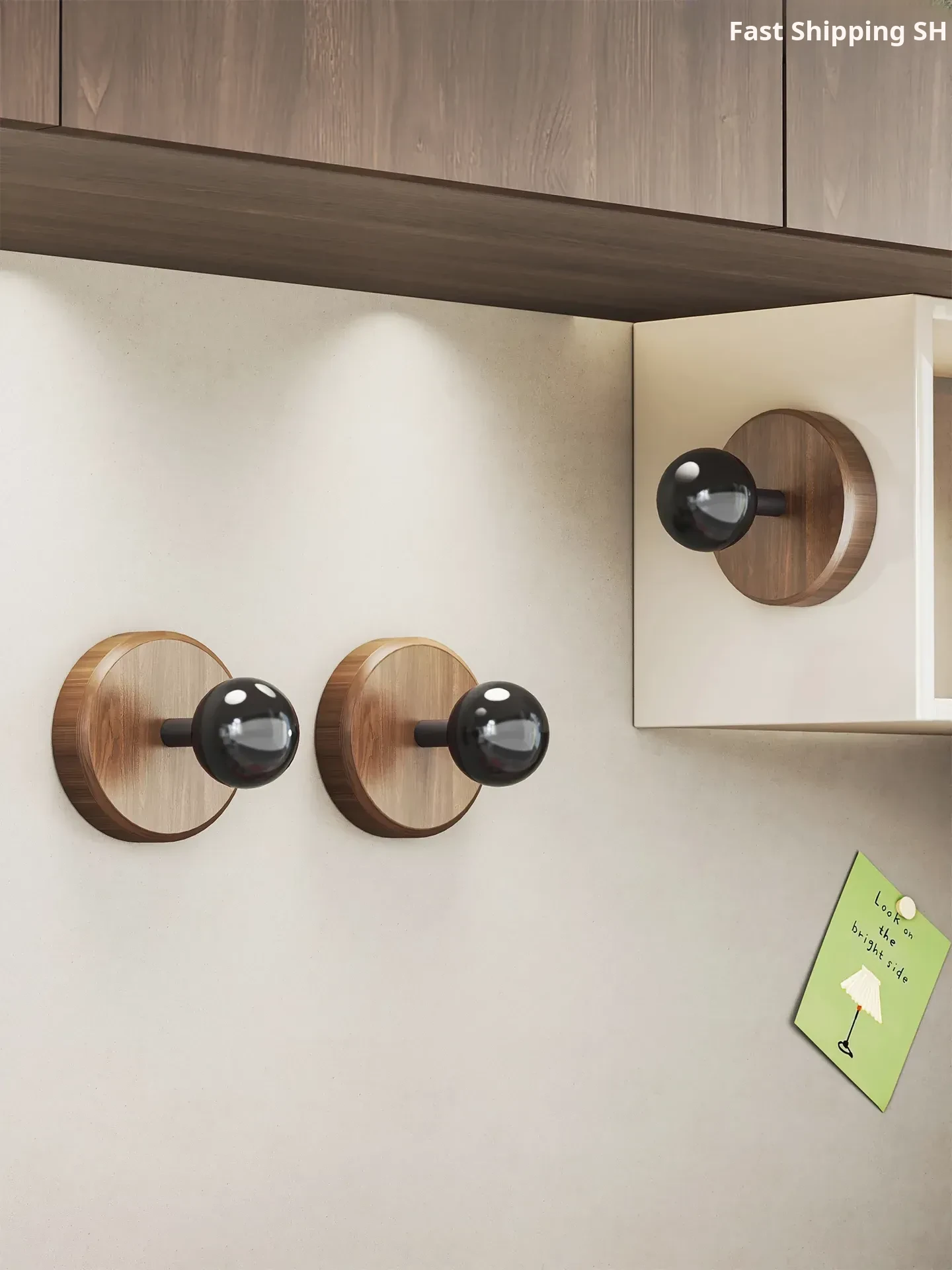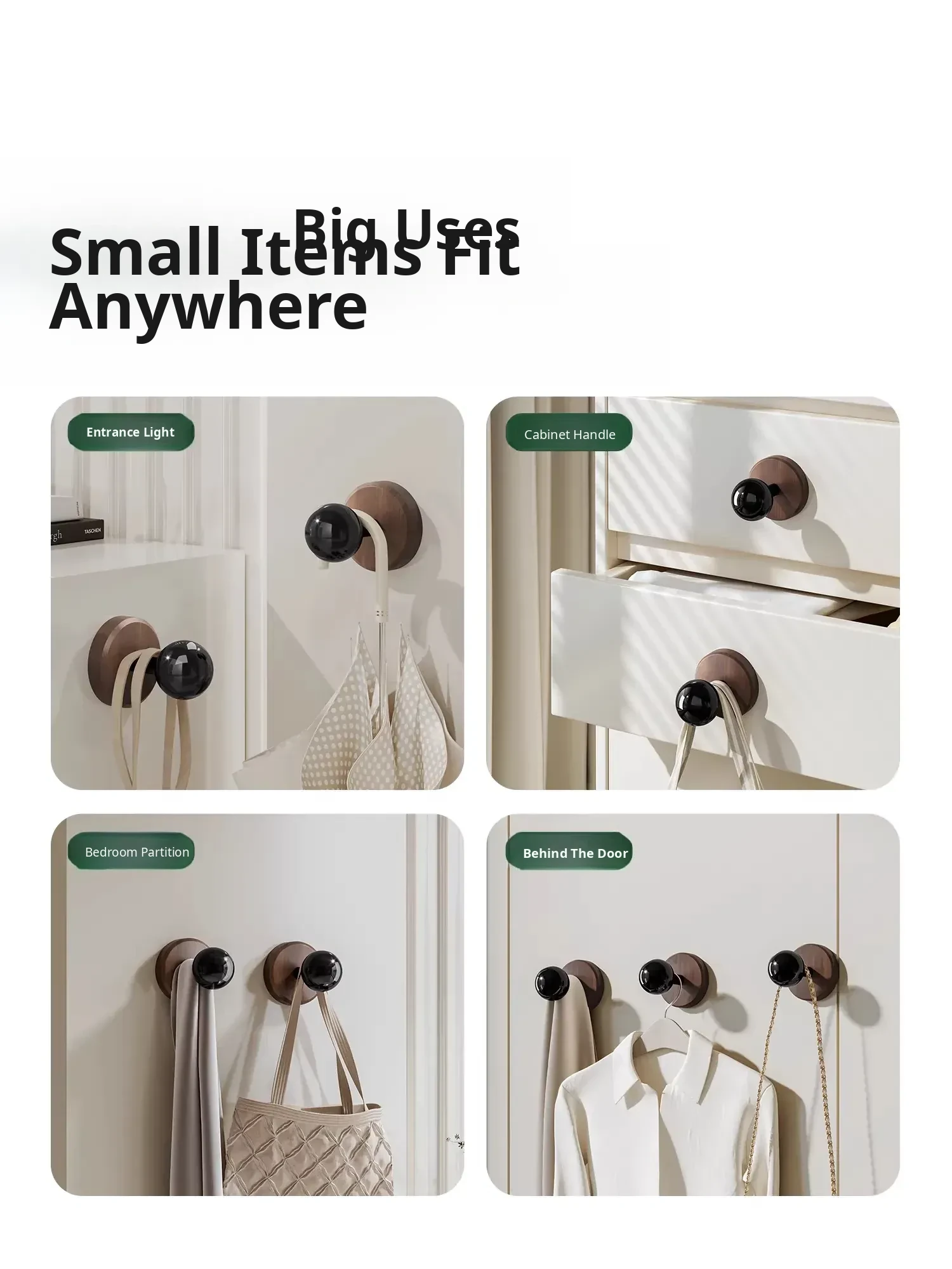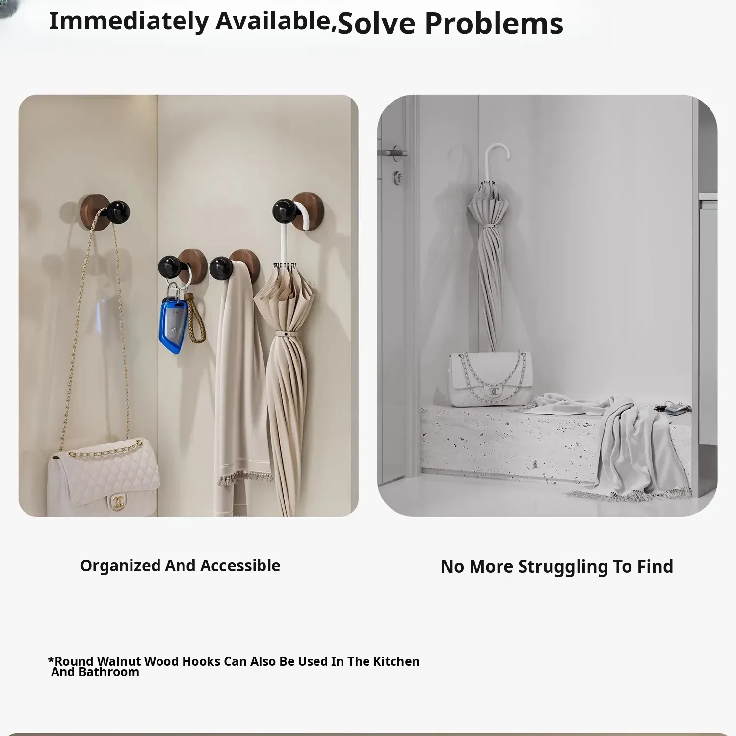 Walnut Wood Grain Suction Cup Wall Hooks - No Drilling, Heavy Duty Storage for Backpacks, Hats, and Bathroom Organization - Strong Adhesive Hooks for Convenient Hanging Solutions