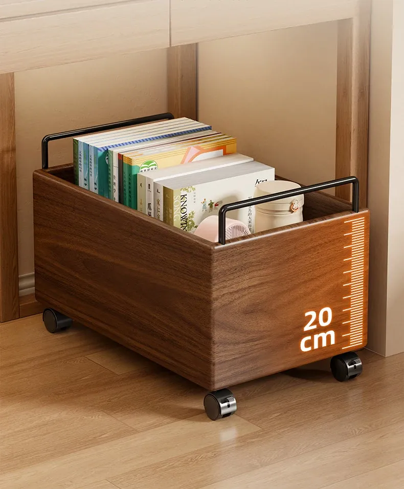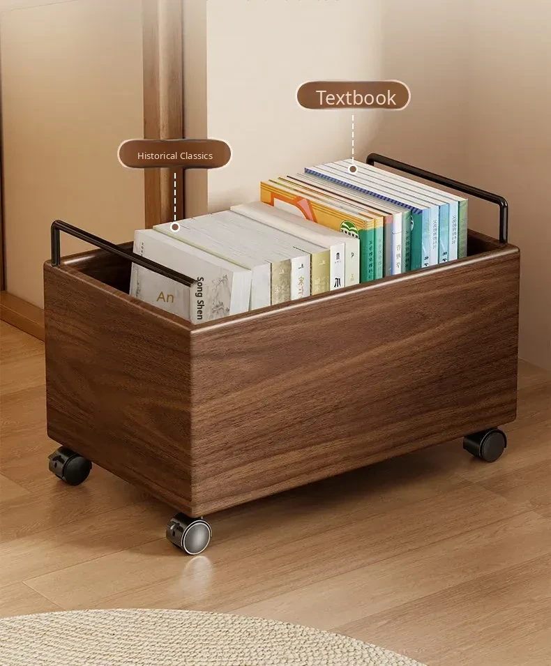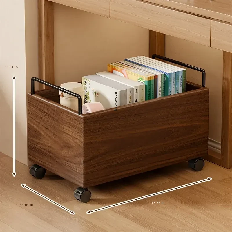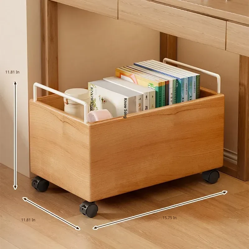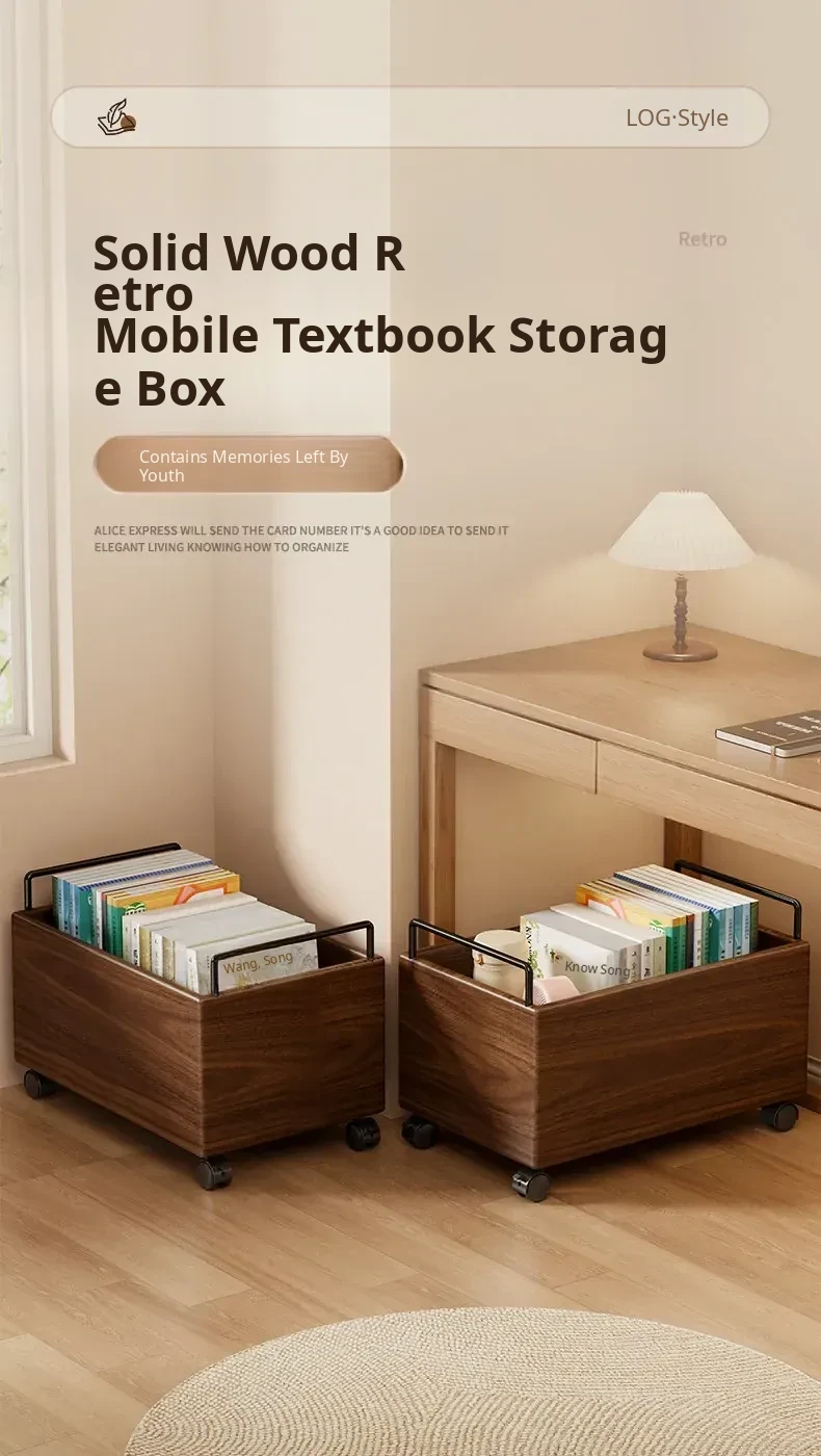 Wooden Book Storage Box for Students - Mobile Classroom Organizer with Wheels, Perfect for Textbooks and Backpack Storage Under Desks
