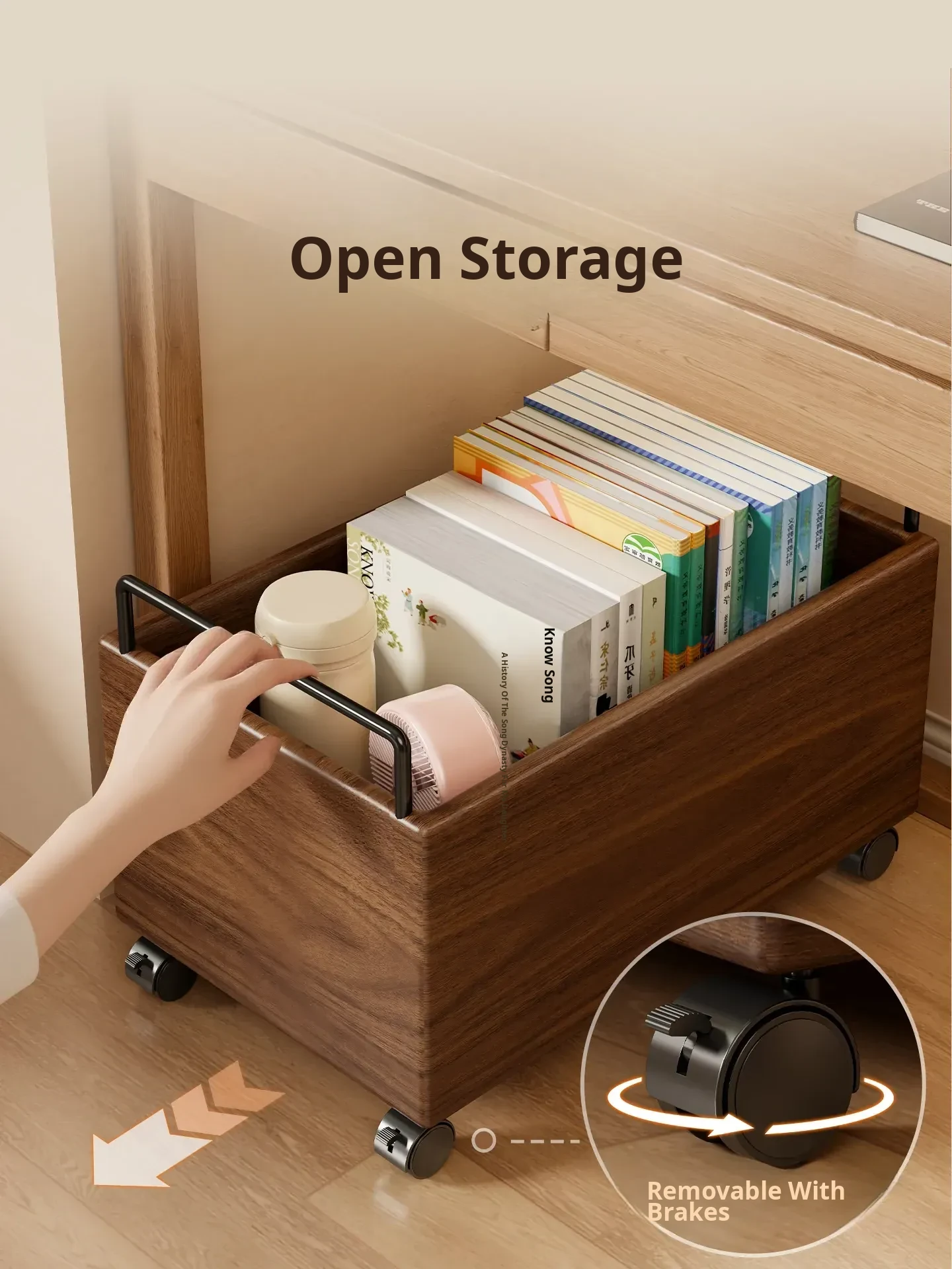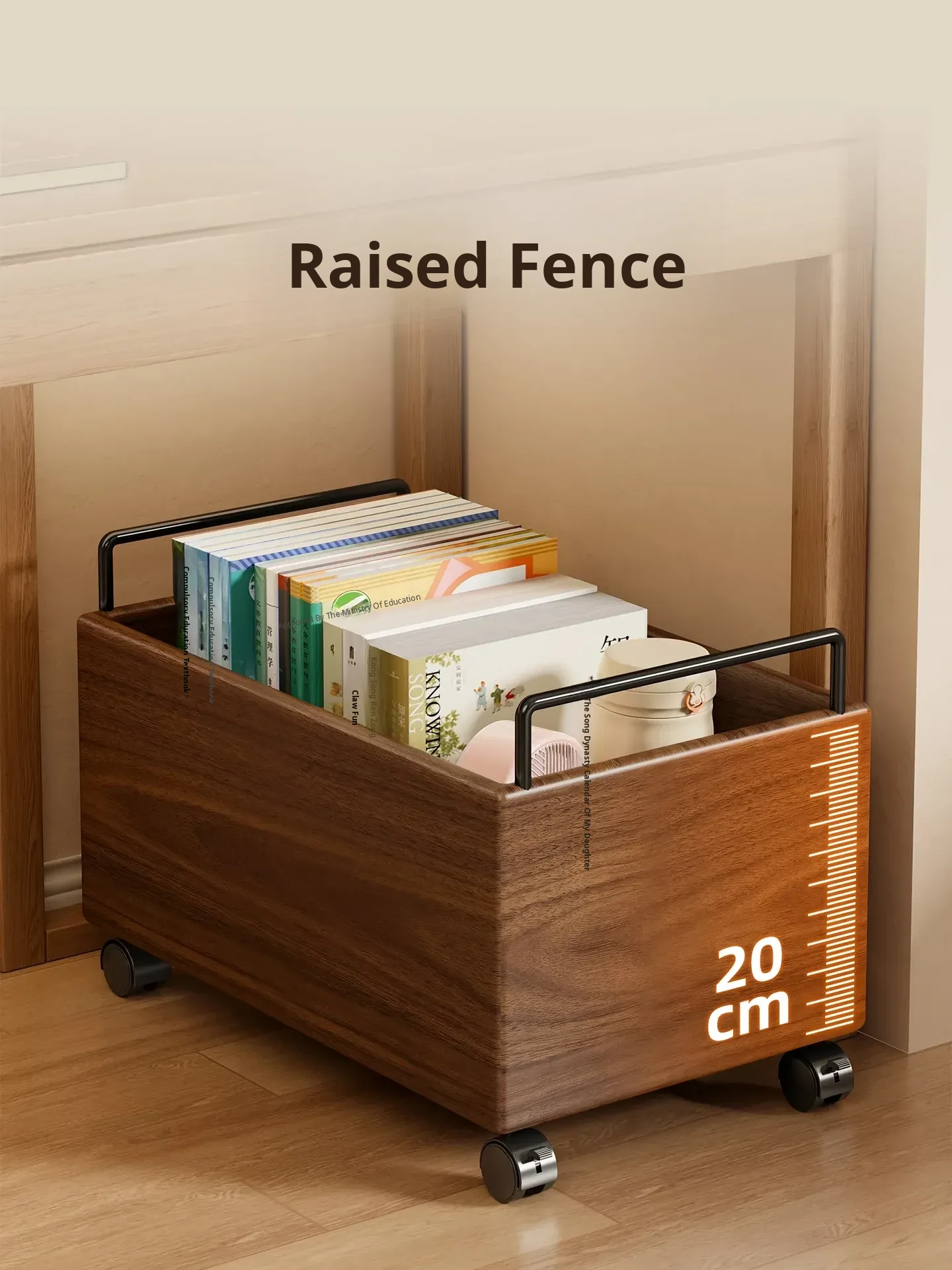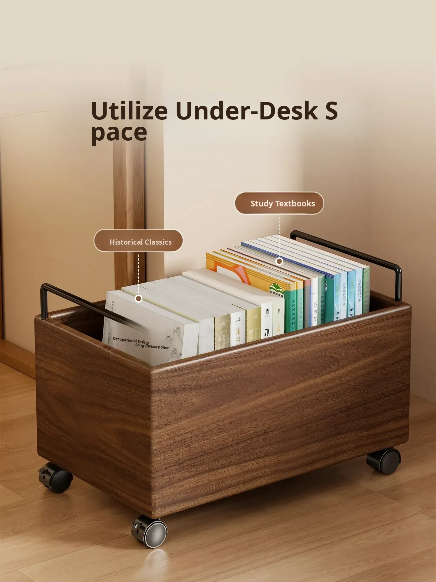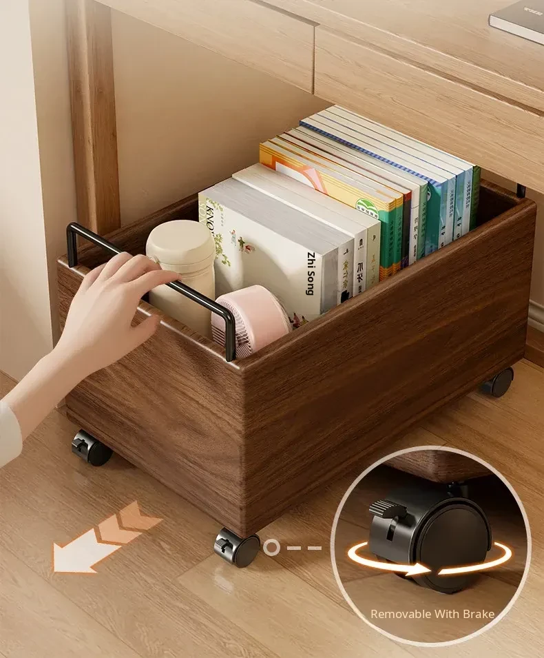 Wooden Book Storage Box for Students - Mobile Classroom Organizer with Wheels, Perfect for Textbooks and Backpack Storage Under Desks
