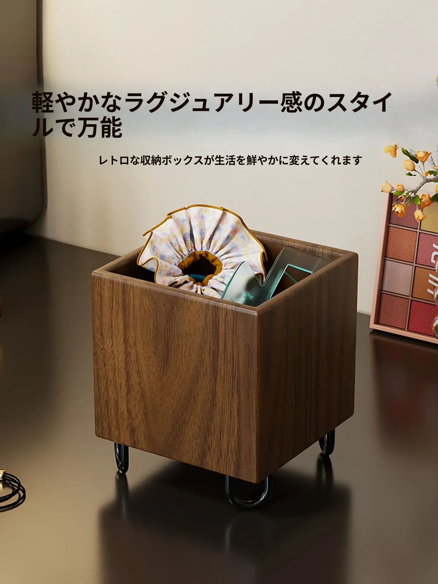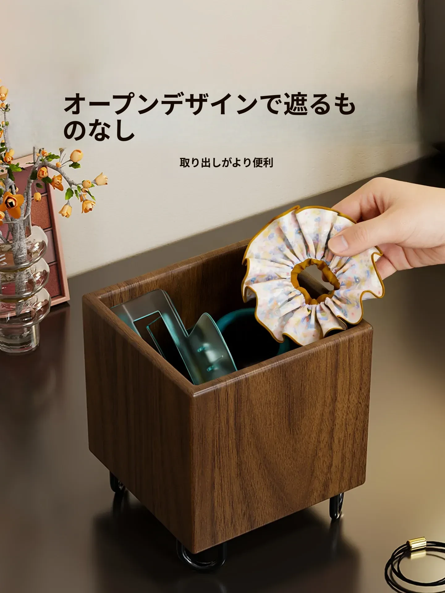 天然木製ヘアアクセサリー収納ボックス 子供用ヘアピン・ヘアゴム・ヘアバンドに最適!デスク周りをスッキリ整頓できる大容量デザイン。女の子の可愛い小物をおしゃれに収納!