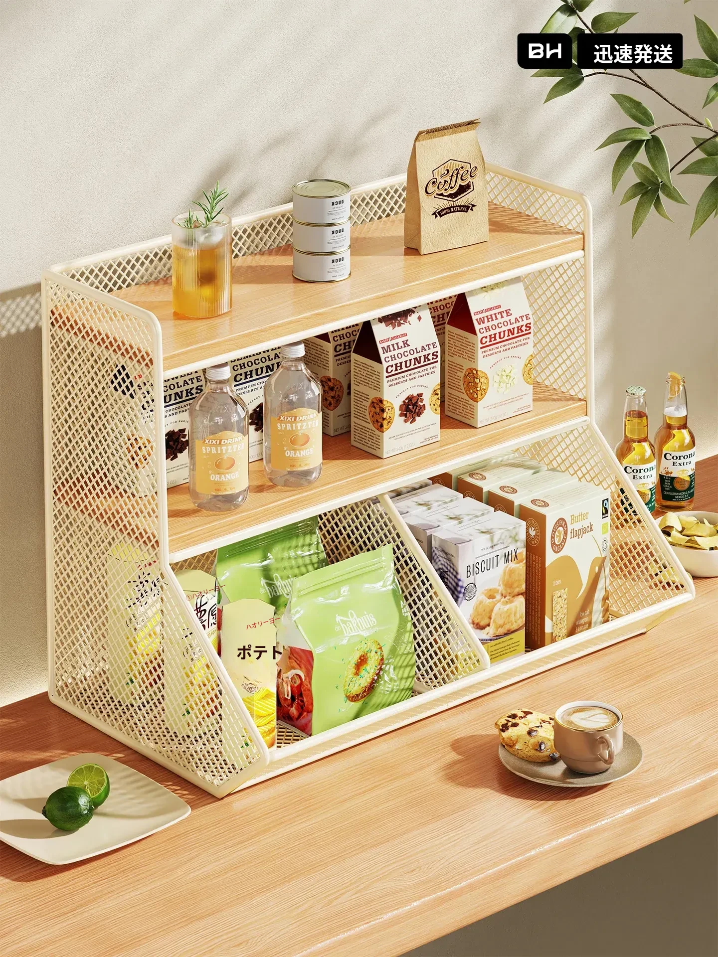 リビングの必需品!多層式デスクオーガナイザー - お菓子やおもちゃをスッキリ収納!ティーバッグやマグカップも整理整頓できる、家族みんなに便利なアイテムです。