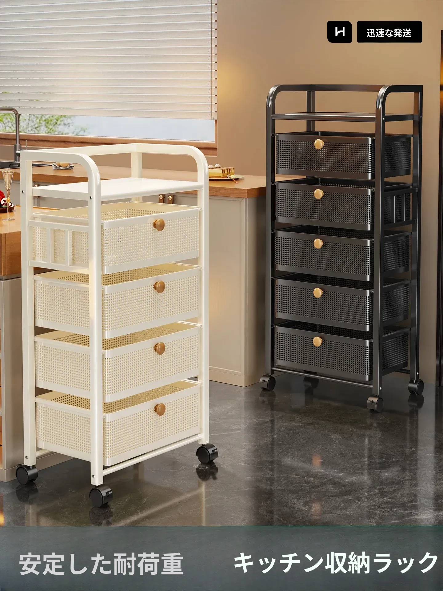 多機能キッチン収納ラック - 家庭用果物・野菜バスケット&調味料ラック、移動可能な多層収納棚でキッチンをスッキリ整理!