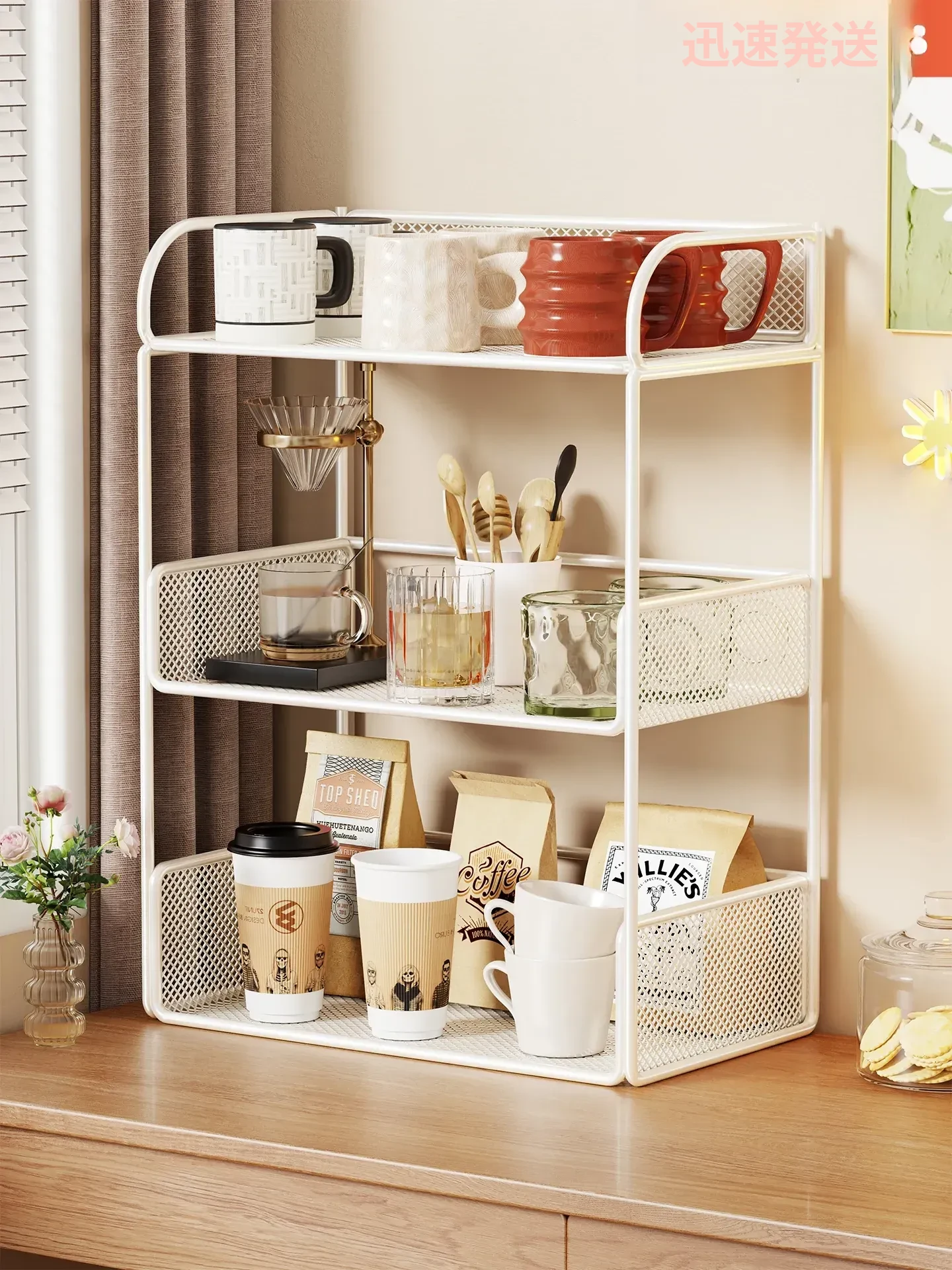 デスク用カップスタンド・整理ラック|リビングでのマグカップや水筒の収納に最適!キッチンで調味料もスッキリ整頓できる多段式デザイン!おしゃれで機能的な収納アイテムです。