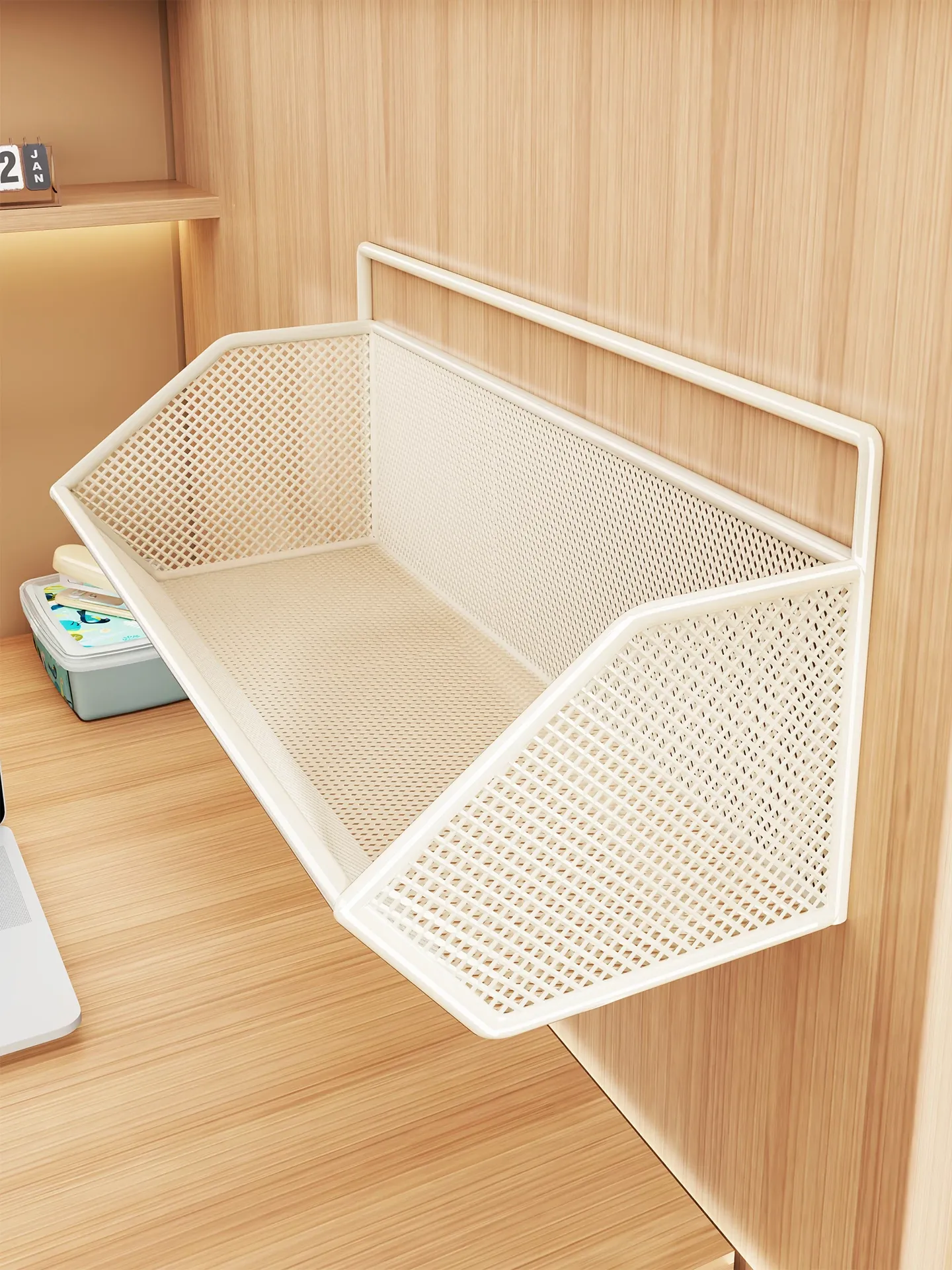 学生寮に最適!壁に取り付けられる収納棚・サイドキャビネット・ベッドサイド収納ラック - 穴を開けずに簡単設置できる便利な収納バスケット!お部屋をスッキリ整理整頓!