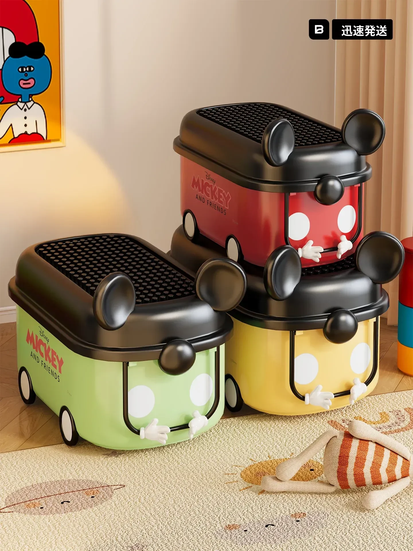 子供用おもちゃ収納ボックス|おしゃれで多機能、大容量のスナックや小物整理バスケット|フタ付き収納ボックスでお部屋をスッキリ!