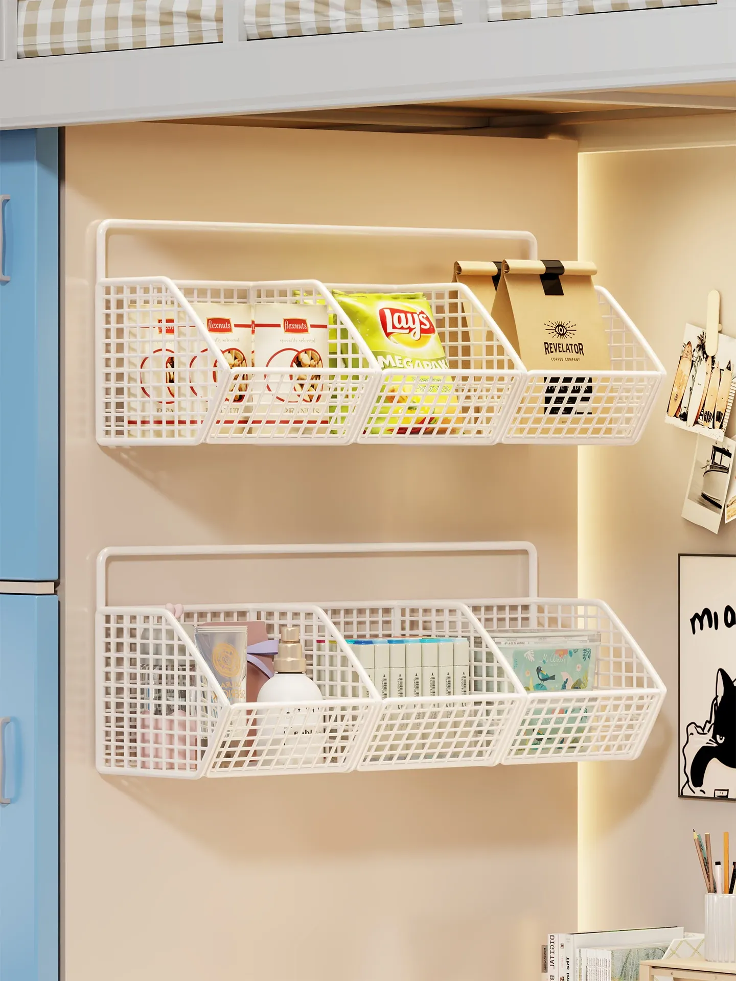 学生寮にぴったり!壁掛け収納ラック - 上段ベッドにも最適な本棚&ハンギングバスケット!穴を開けずに簡単取り付け、部屋をスッキリ整理整頓!