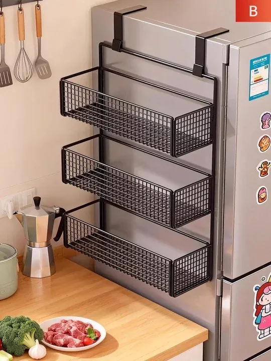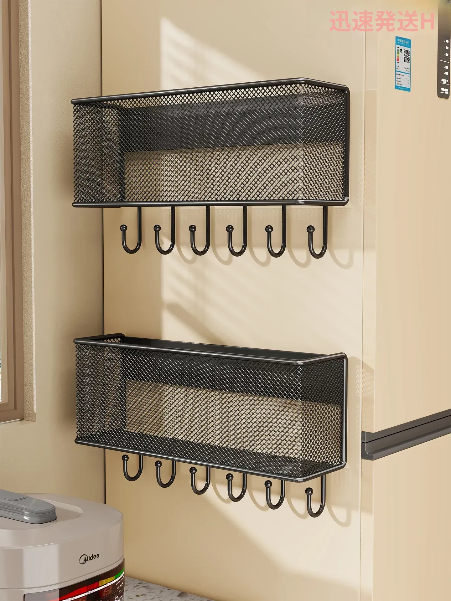 キッチン冷蔵庫用マグネット収納ラック!保存袋やティッシュもスッキリ整理。隙間にぴったりフィットして、調味料やラップをスマートに収納。キッチンをもっと便利に!