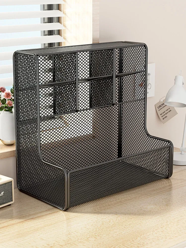 オフィスデスク用多段収納ラック - 書籍や文房具をスッキリ整理!シンプルでスタイリッシュなデザインで、デスク周りをすっきり整え、作業効率をアップ!