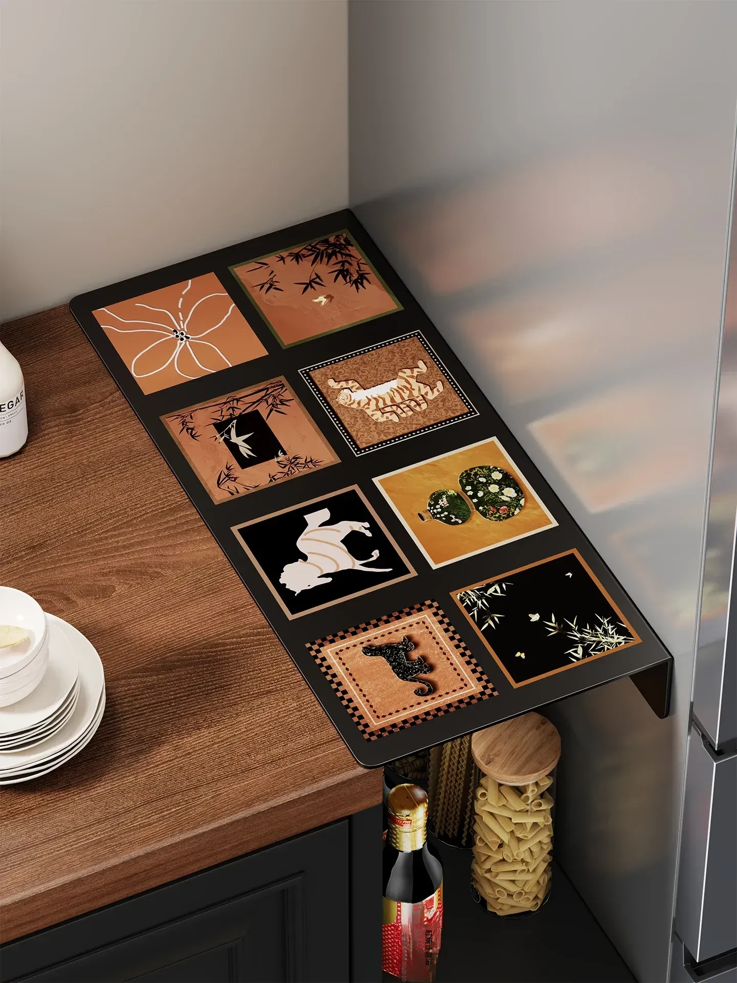 キッチン用冷蔵庫隙間収納板 - 磁石式で簡単取り付け!幅広で延長可能、穴あけ不要の便利アイテム。台面の隙間を有効活用して、すっきりとした収納を実現します!
