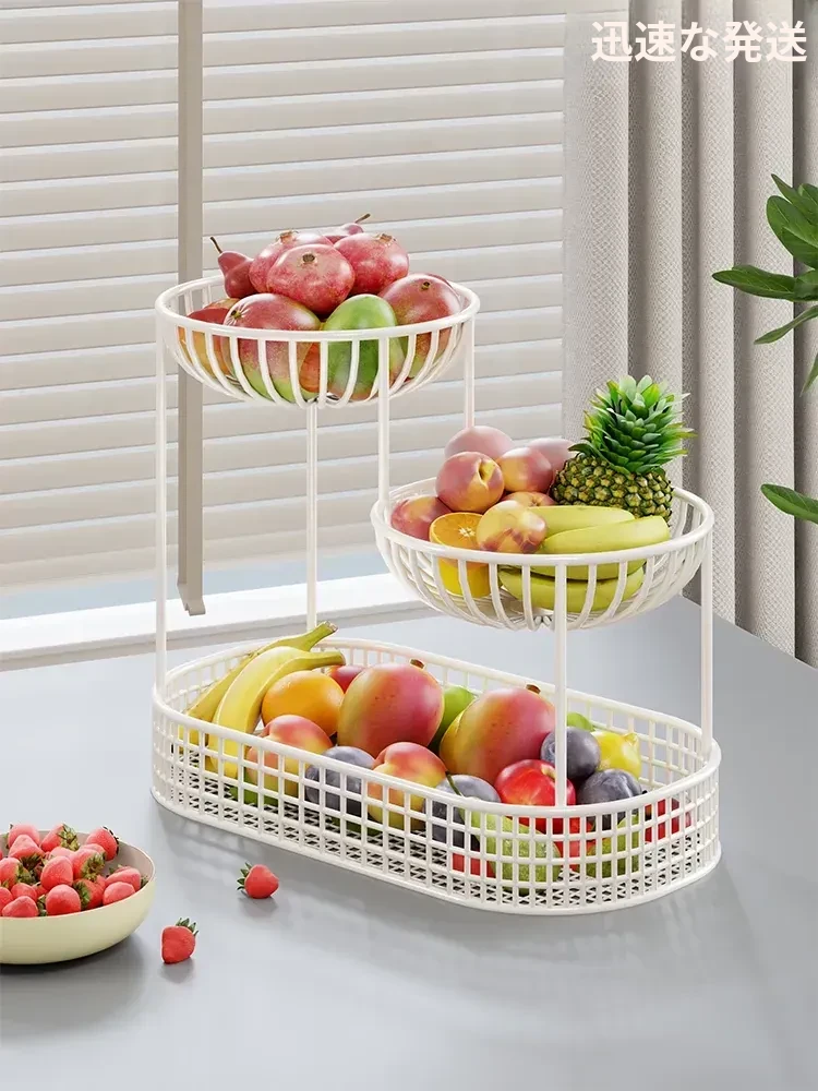 高級感溢れるフルーツバスケット - 家庭用リビングテーブルのためのスタイリッシュな多層収納ラック、ケーキやスナックの美しいディスプレイに最適!上品なトレーでおもてなしを演出。