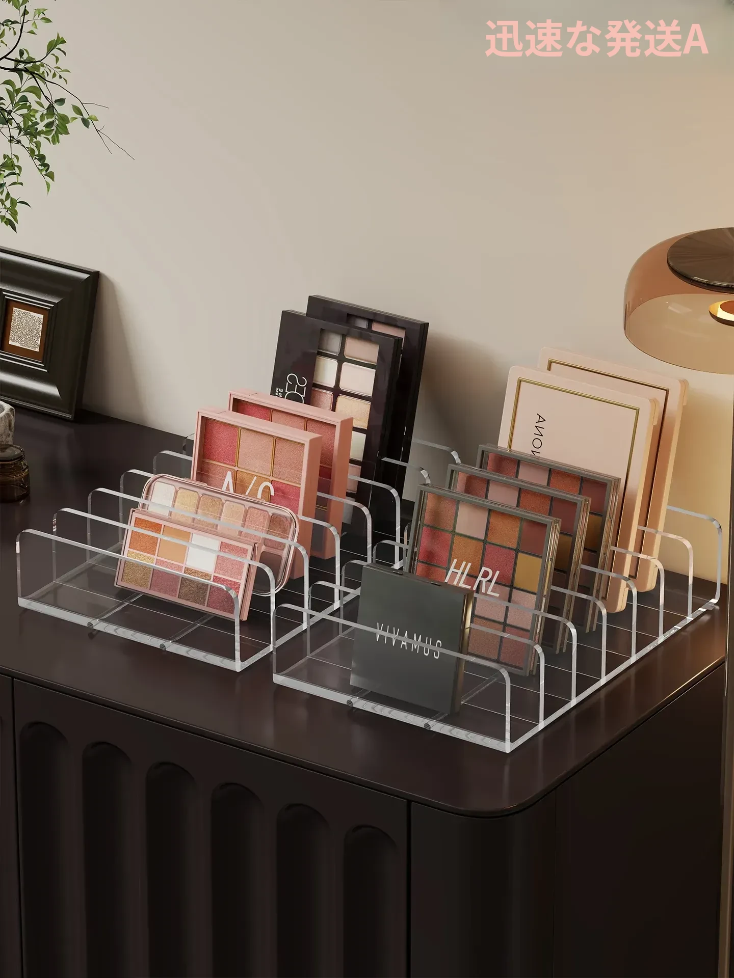 透明な化粧品収納ラック - アイシャドウパレットやフェイスパウダーを分けて整理!寮のデスクやドレッサーに最適な、スッキリとした美しい空間を演出します。